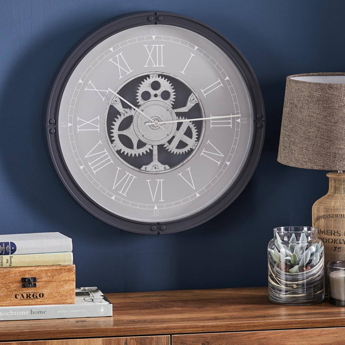 I love this clock for its modern industrial vibe, which makes it a versatile piece for various interiors. Its grey colour palette and visible gear design work particularly well in contemporary, loft-style, or minimalist spaces, adding a subtle touch of mechanical intrigue without overwhelming the decor. When styling, consider placing it against a darker or neutral wall to make the clock stand out, and pair it with other metallic or textured accessories for a balanced look. It also works great in home offices or living rooms where you want a statement piece that combines function with design flair.