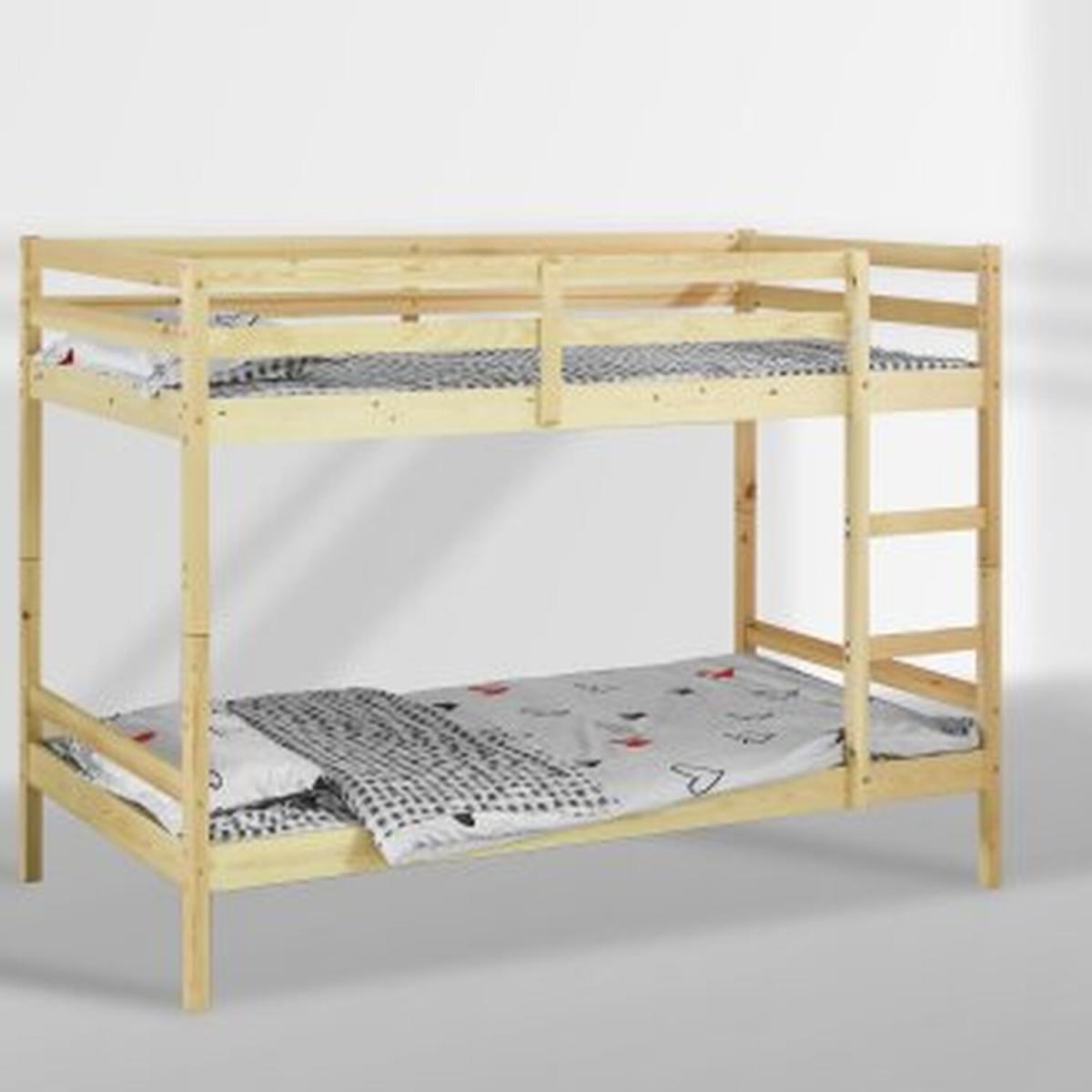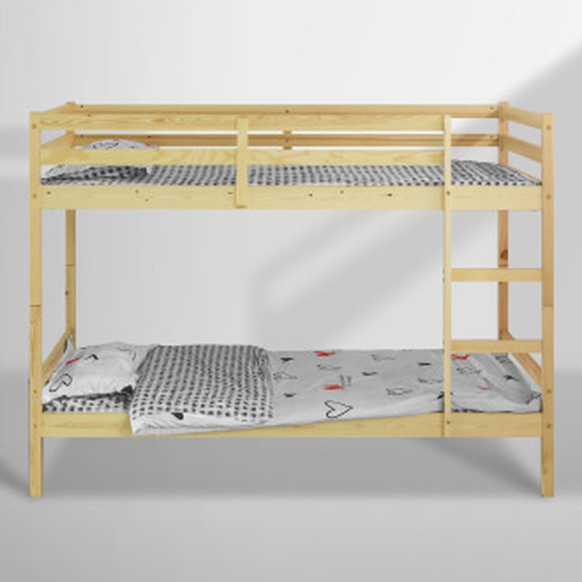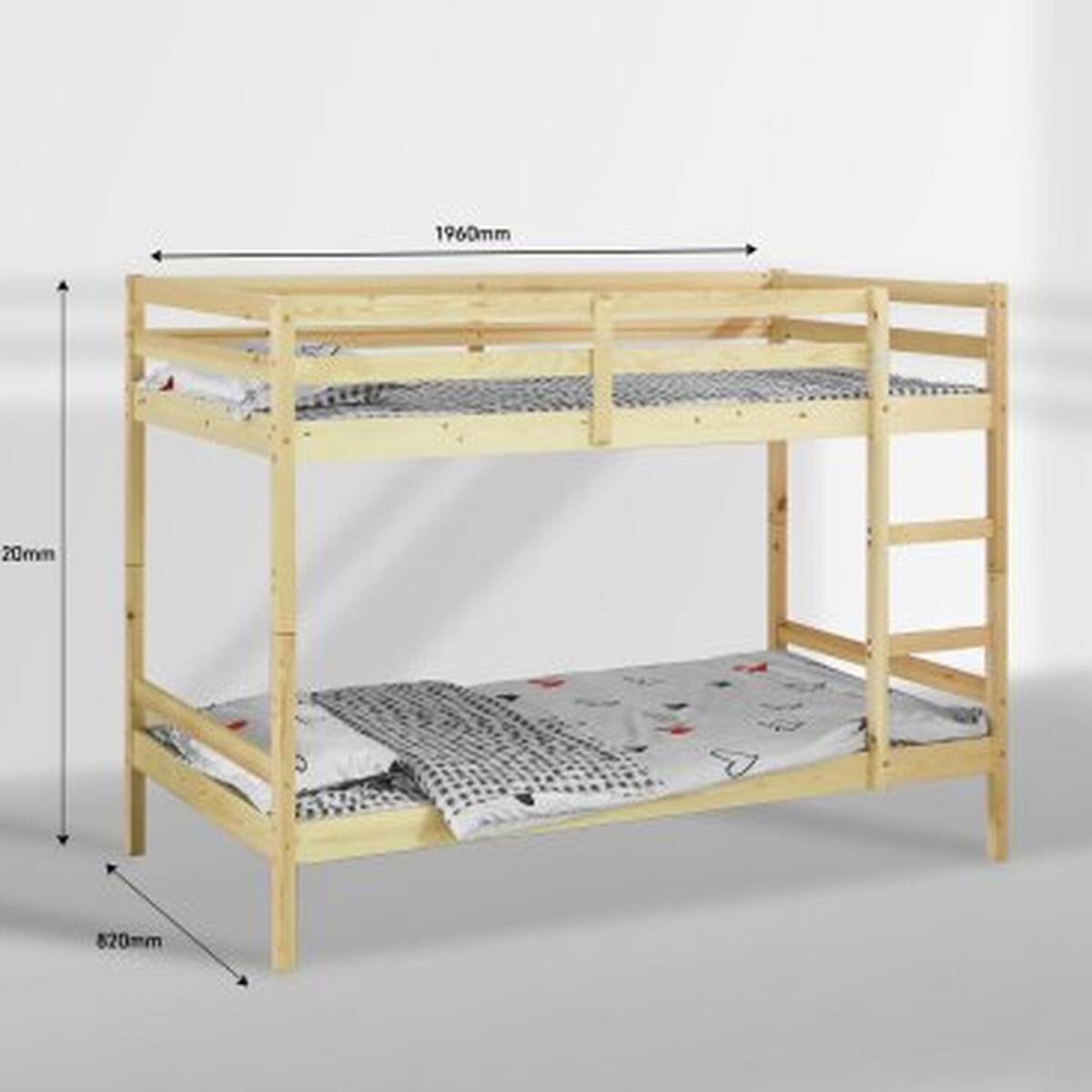 The Mecor Bunk Bed is a lovely simplistic bed with a natural pine finish meaning the bed is sure to compliment many interiors. It is available in 2 sizes 2FT. 6 and 3FT and perfect for sleepovers or if you have two children sharing a room. Frame only - Requires 2 2FT. 6 UK standard mattresses. The wooden slatted base provide extra support to the mattress. Dimensions:Small Single 2FT. 6 L 1960 x H 1420 x D 820mm. The frame is flat packed and requires easy home assembly.