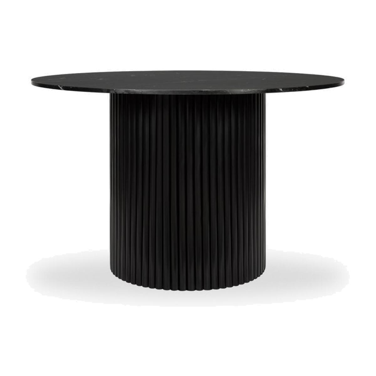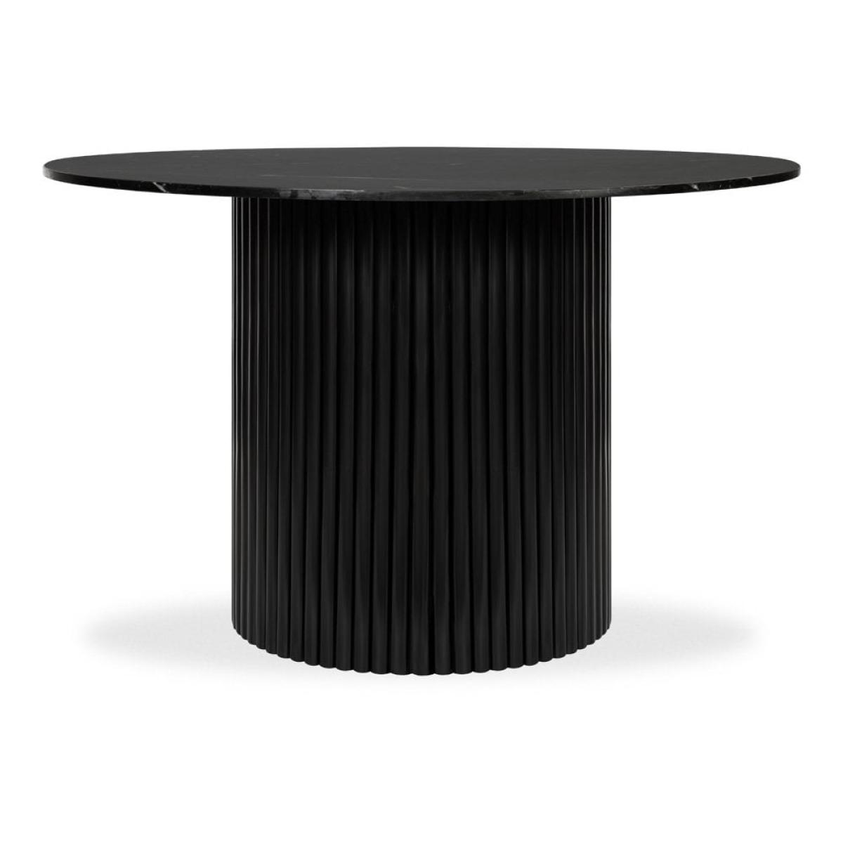 Transform your kitchen space with the Medby dining table. Showcasing a stained black base with a soft ribbed design and a stylish round black marble top, the Medby range combines the natural materials of wood and marble in a modern and luxe piece of furniture. We love the all-black look for a striking and elegant piece of dining room furniture. View The Medby Range This product is handcrafted from natural marble from the mountains of Rajasthan, India, making each piece unique with naturally occurring texture, pattern, and colour. These variations should not be seen as flaws but a design that is truly one-of-a-kind.