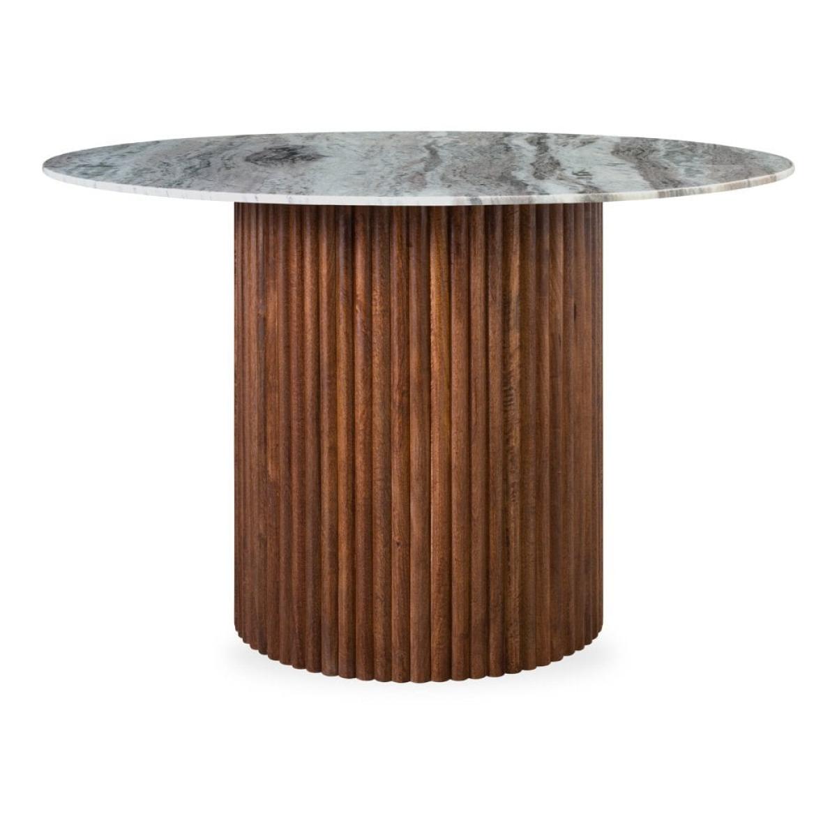 Medby 4 Seat Round Dining Table, Dark Mango Wood & Grey Marble