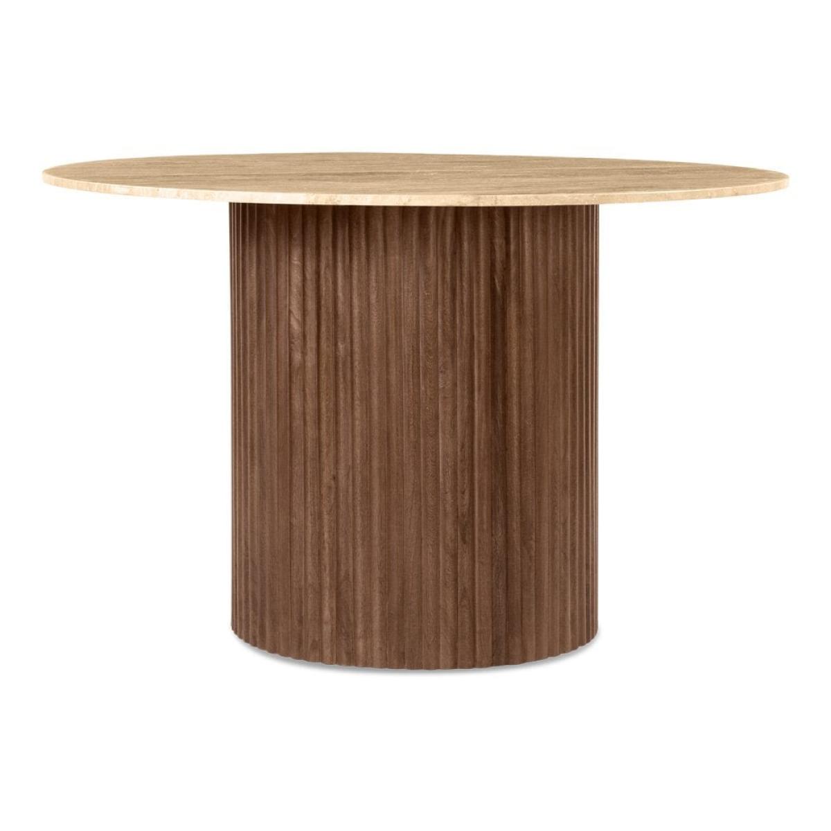 I love this set for its blend of natural textures and contemporary appeal. The travertine table paired with the rust velvet chairs creates a warm, inviting atmosphere that works well in both modern and rustic interiors. It’s particularly suited to spaces that embrace neutral palettes with earthy accent tones or even minimalistic settings that need a touch of warmth. Practical styling tips include balancing the bold velvet chairs with softer accessories like linen or wool textiles, and adding greenery or wooden accents to emphasise its organic vibe. This set is versatile enough to serve as a focal point or complement other natural materials in your dining room.