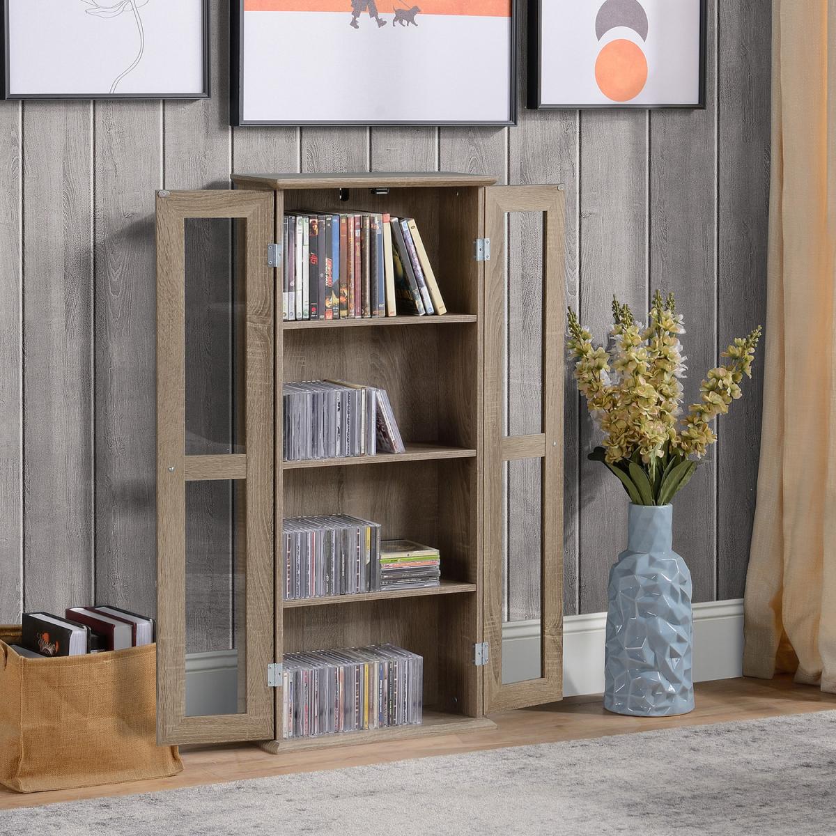 Media Cabinet Holds 100 CDs 4-Tier CD Storage Unit with Magnetic Door - Brown