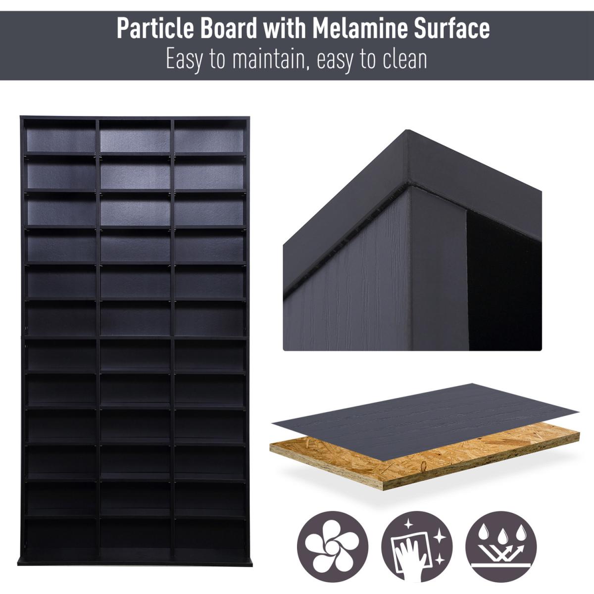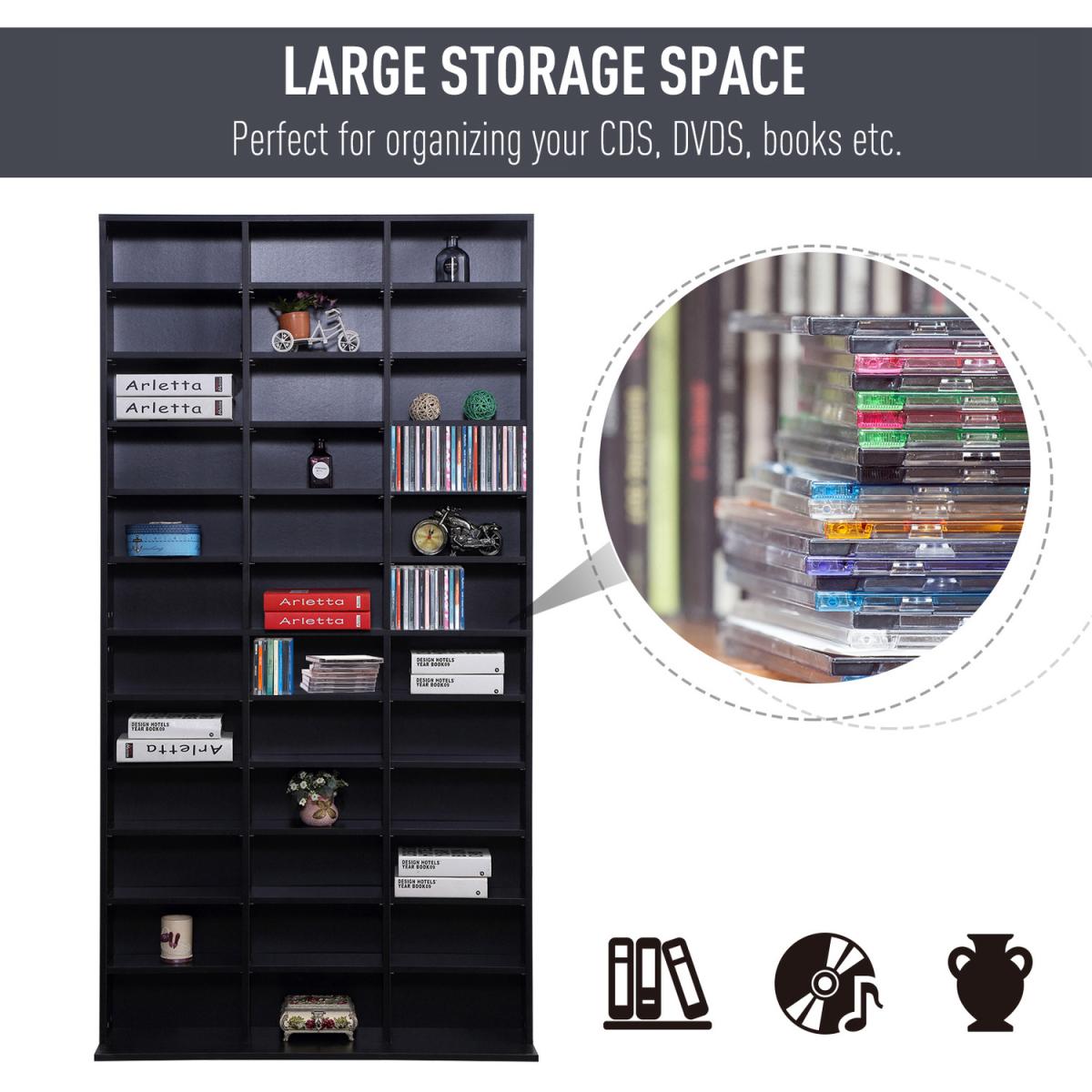 This HOMCOM media storage shelf is perfect for organizing your CDS, DVDs, books etc. Partition boards could be installed at an adjustable height to meet different storage needs. This will be modern and practical furniture in any room. You can be assured that your books, media products will stay safe while they sit on the shelf due to their sturdy base.