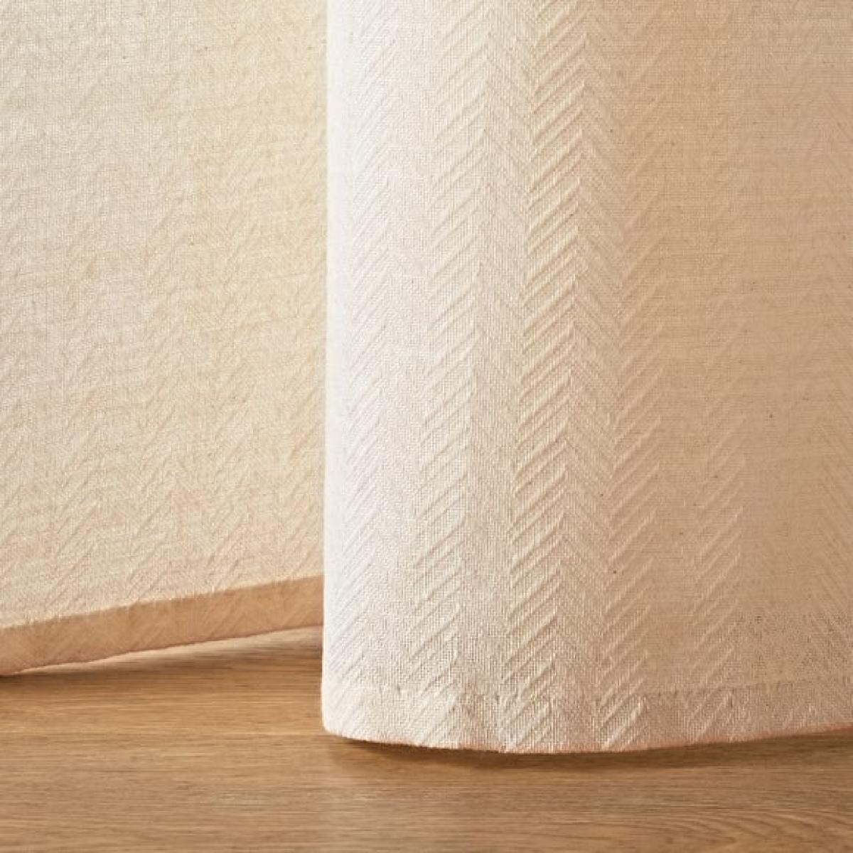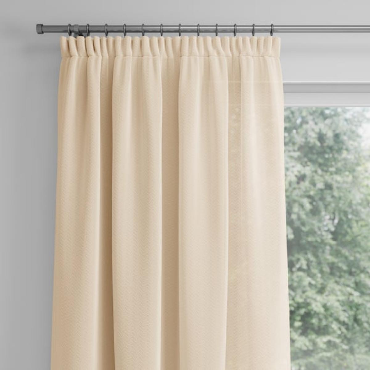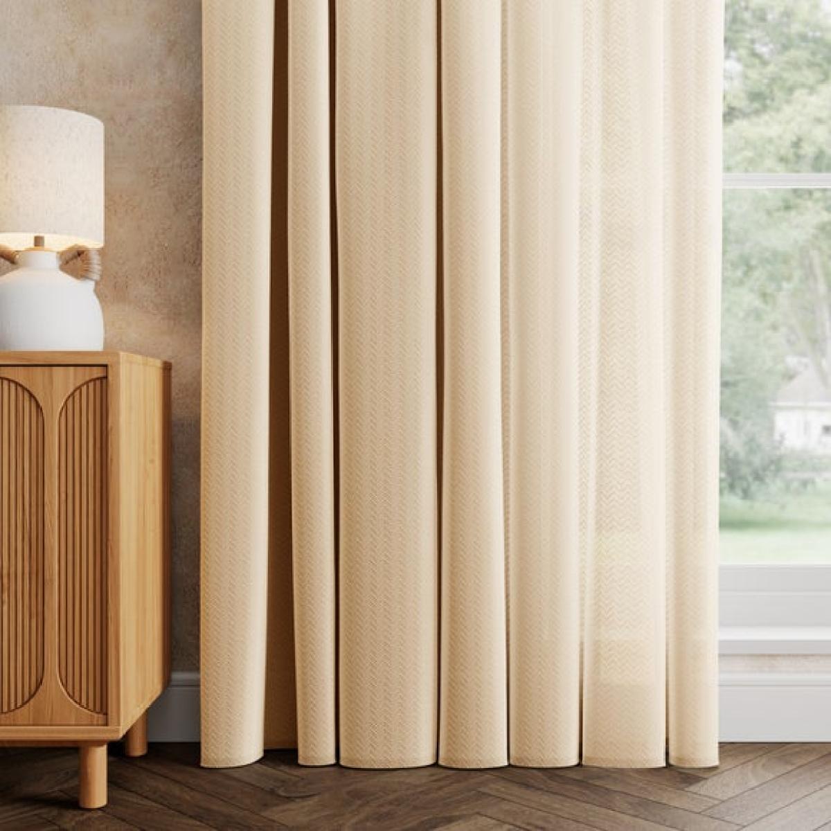 * Premium polycotton composition * Herringbone design * Available in a selection of header options * Coordinating Made to Measure Fabric by the Metre available to purchase separately Enhance your home with the Medina Made to Measure Voile Curtain, featuring a premium polycotton blend and a striking herringbone design. This breathable, lightweight fabric is perfect for creating custom curtains that provide privacy while allowing soft light to filter through. Available in a range of various header styles, it adds boho sophistication to any room.