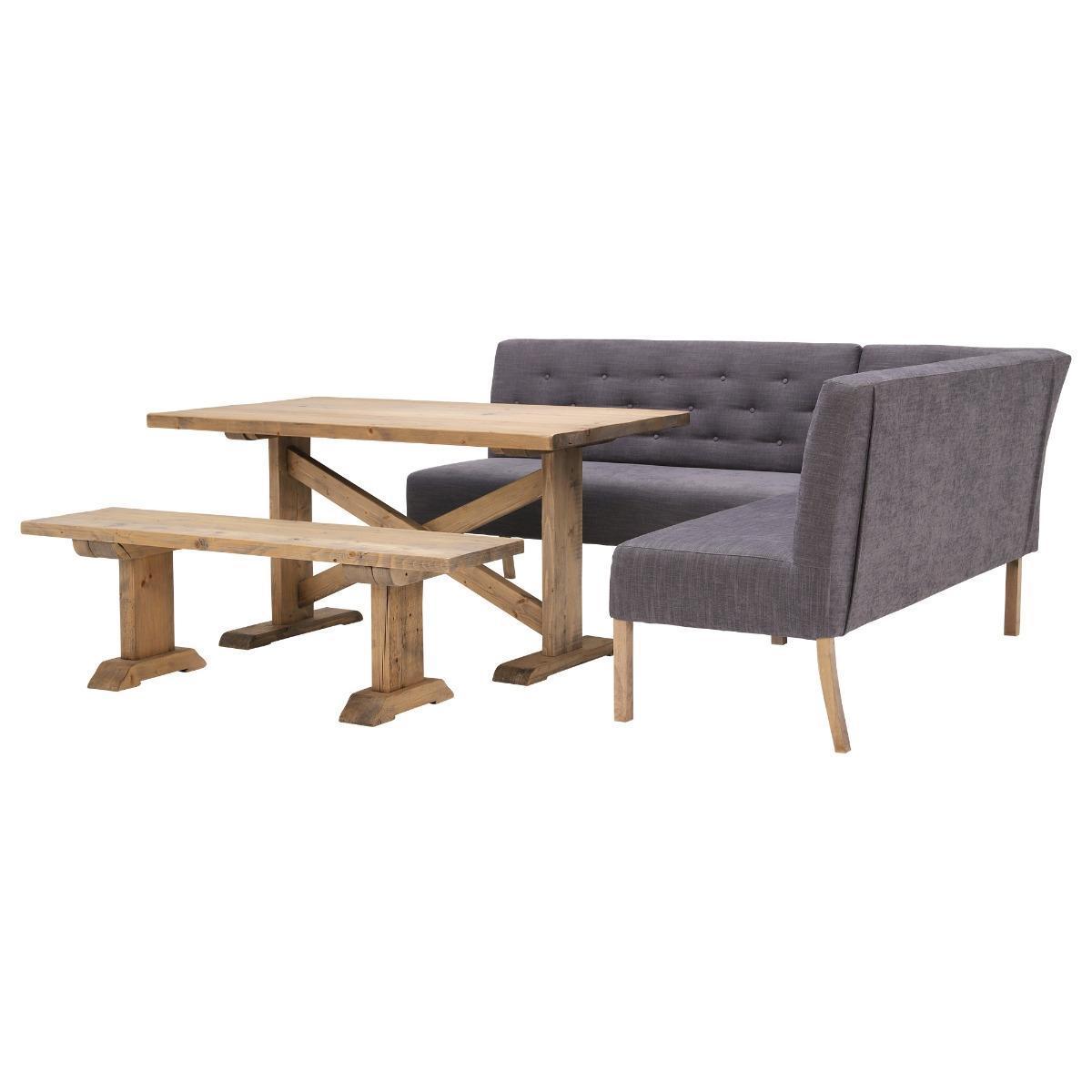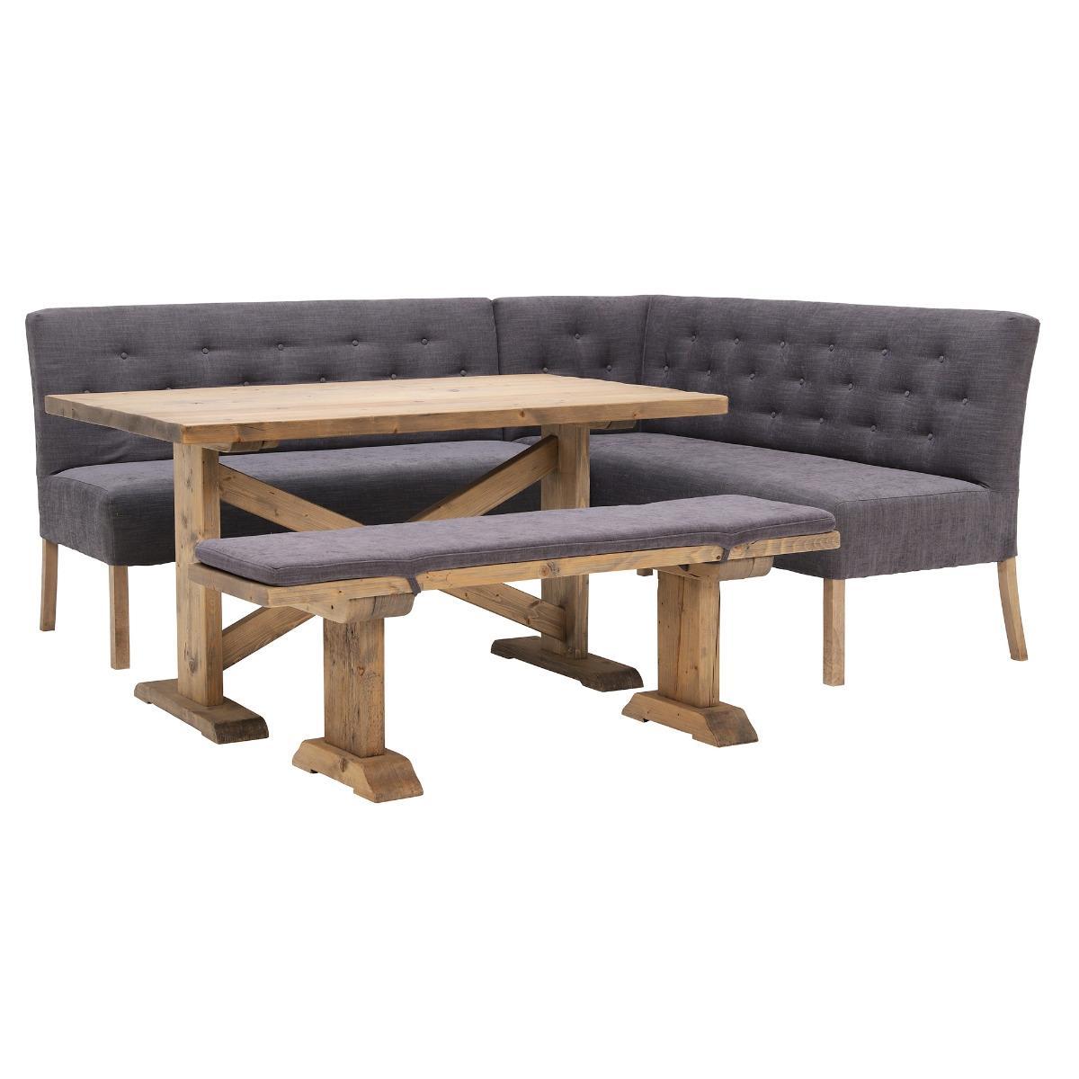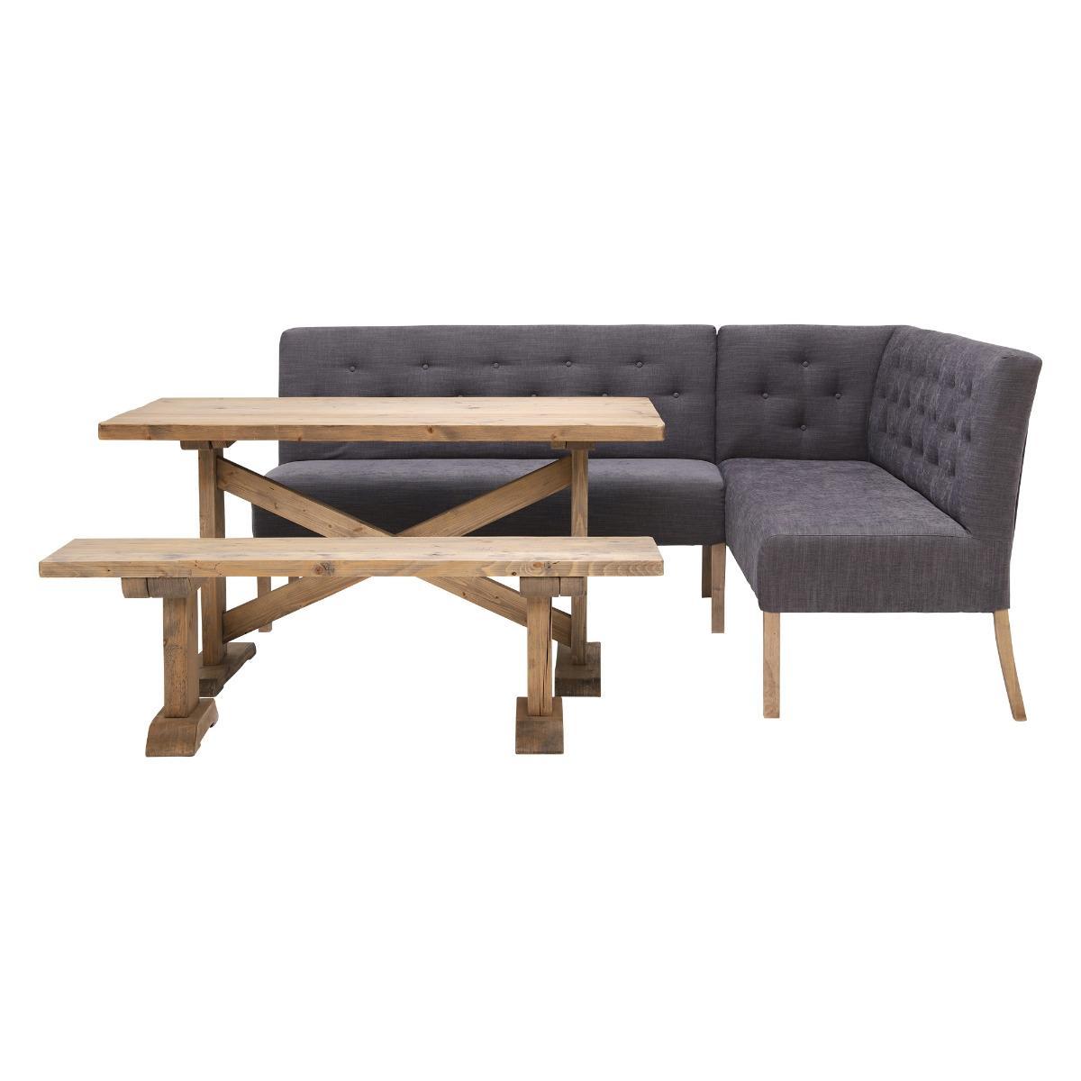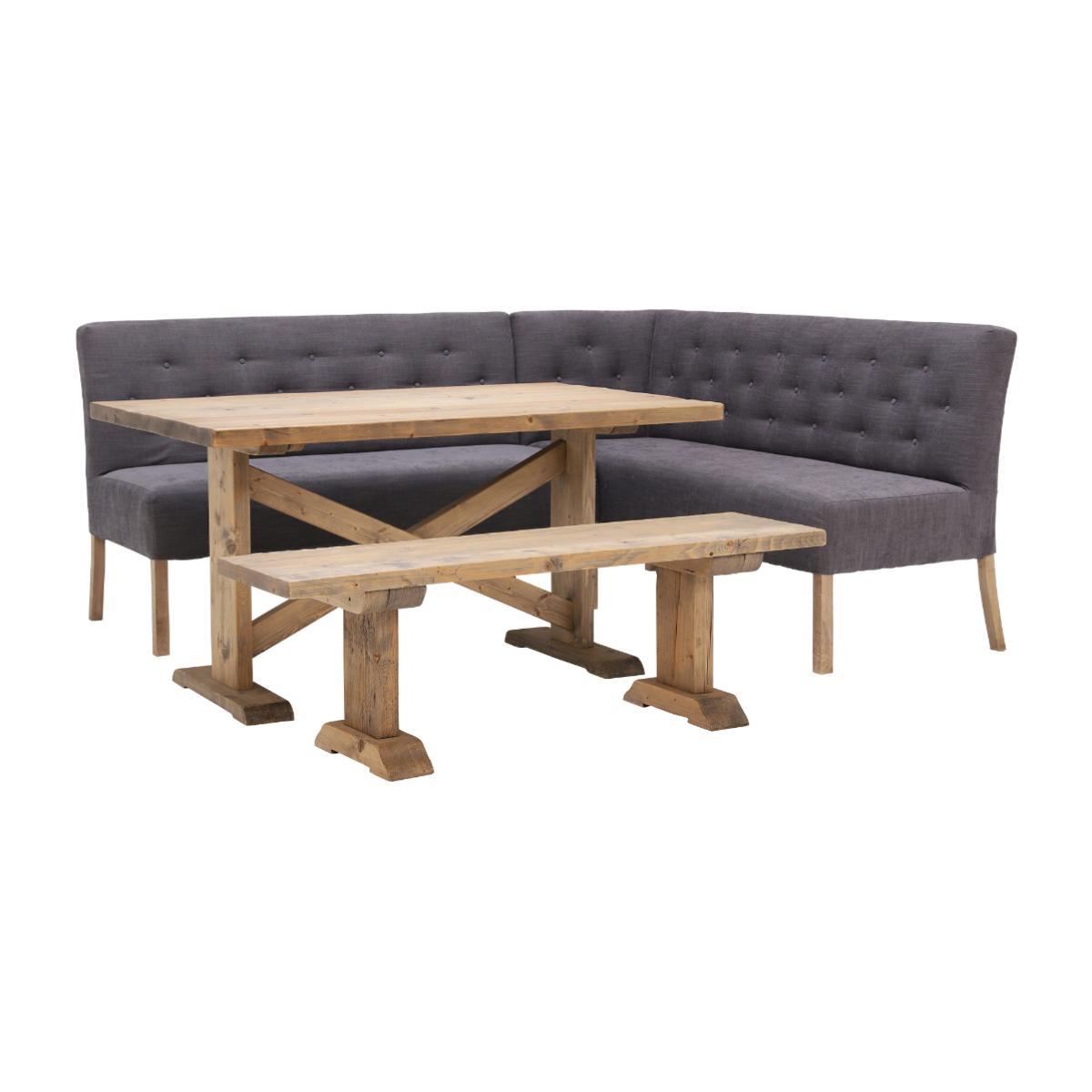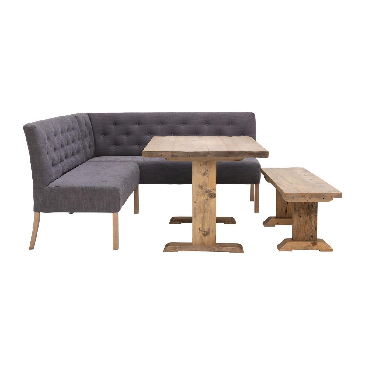 Design. Create a relaxed dining area in your home with the Newsham Corner Dining set, the reclaimed timbers have been expertly crafted and beautifully finished with a Grey wax creating a rustic feel. The upholstered buttoned back bench provides comfortable seating ideal for cosy dinner parties with family and friends. Add a Carson bench topper for additional comfort, please note this is an additional cost and is not included as standard.