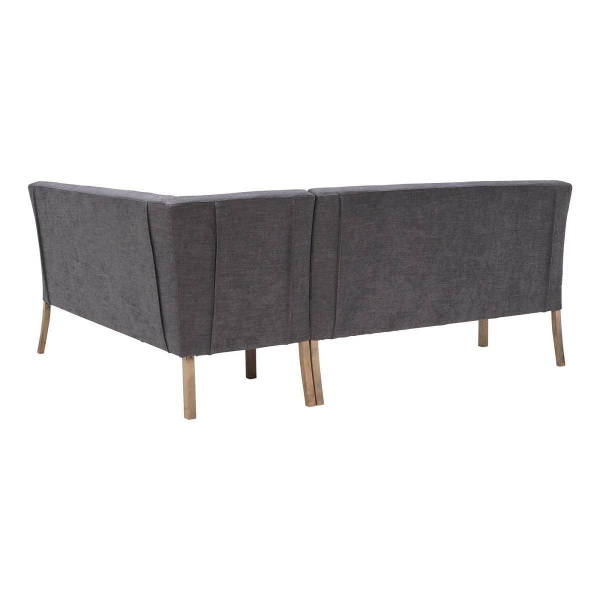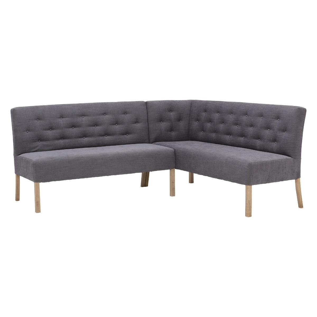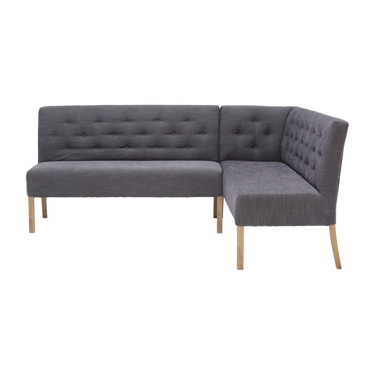 Design. The whole family can hang out together with the Medina upholstered corner bench, creating ample seating around the dining table whether it’s for family dinners, doing homework or just relaxing together. The back button detail and reclaimed wood legs add a traditional twist and sit perfectly with the Newsham dining table and bench.