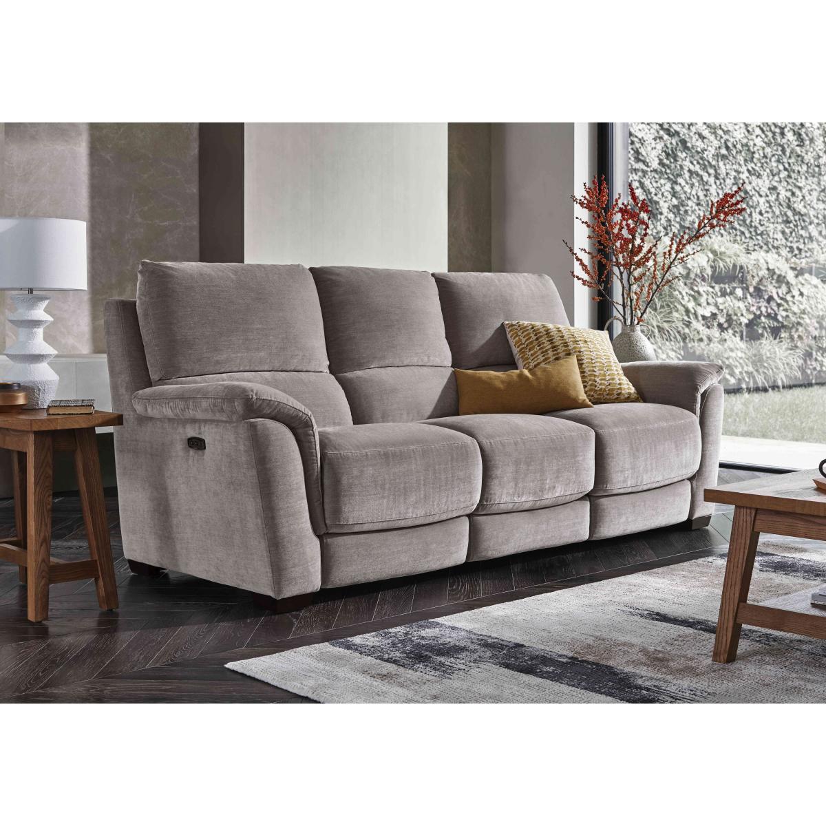 Sumptuous cushioning, sprung seats and backs, compact proportions, power recliners? Yes, please. Our handcrafted Medio range brings luxurious big sofa comfort and style to smaller living rooms. Carefully designed to maximise seating space, the sofas and armchairs in the collection have slim, outward-curving arms. And with two sizes of sofa plus an armchair and a storage footstool, it’s easy to create a stylish and functional living room setup. You’ll be wowed by the upholstery options too – there are literally dozens and dozens of choices in both high-quality fabric and 100% leather. The Medio collection is exclusively available at Furniture Village. Enjoy more sofa comfort in less living room space with our three-seater Medio sofa. With sprung seats and back, sprung seat cushioning and optional power recliners, it’s all you need to relax. Why you’ll love it Generously cushioned comfort for compact living spaces. Slim, outward-curving arms allow for maximum seating in less space. This sofa’s sprung seats and back promise superb support. The seat cushioning is sprung too – and you’ll definitely appreciate the comfort. Upgrade to the power model and enjoy smooth power recliners and USB charging. Dark wood feet are made of wenge. In a huge choice of fashionable upholstery fabrics and colours. Also available with 100% leather upholstery. Handcrafted and exclusively available at Furniture Village. This 3-seater sofa is part of our Medio range. What you need to know Medium comfort level. Seat suspension: no-sag spring. Seat cushioning: foam and inner coil spring. Cushioning is fixed. Back suspension: rubber webbing. Back cushioning: fibre. Cushioning is fixed. Arm cushioning: foam and fibre. The non-reclining version of this sofa does not have USB charging. Please allow time for new recliners to ease. Minor gaps are necessary to ensure ease of recliner motion and may be exaggerated depending on floor type. Some fabrics can show wear on areas of more use or in direct sunlight. Clean regularly using a soft brush or vacuum with the curtain attachment. Deal with any spills promptly. Professional cleaning advised for oil- and grease-based stains. Please read our upholstery care guide for more advice.