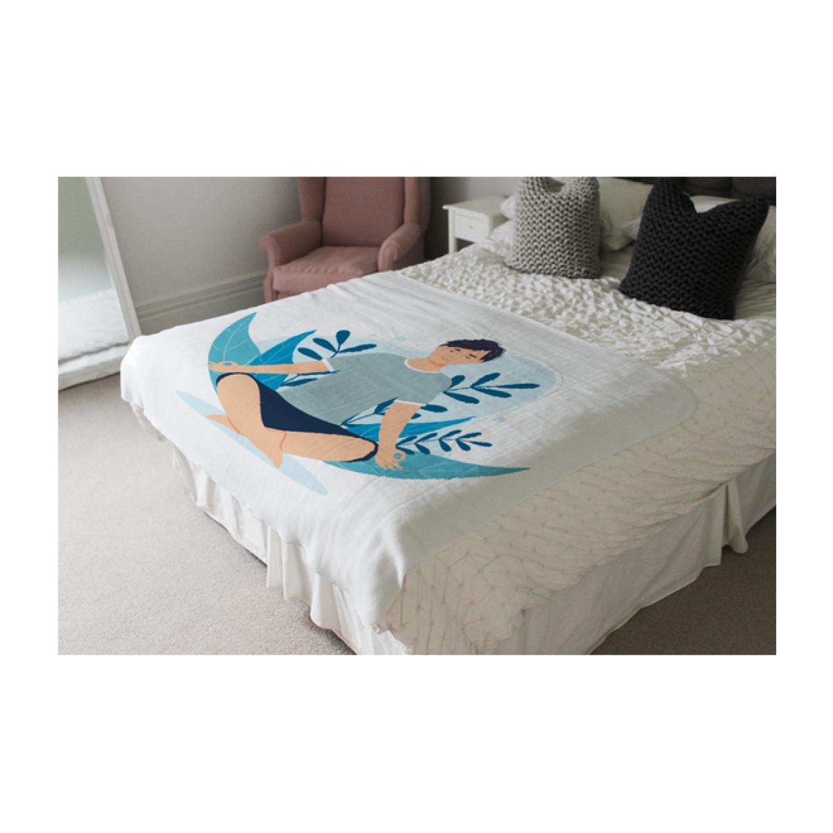 I really like the meditation illustration throw because of its tranquil, minimal design and calming colours, which make it a versatile piece for both modern and Scandinavian-inspired interiors. It works particularly well layered over neutral bedding in a bedroom to add a pop of personality without overwhelming the space. For styling tips, try pairing it with textured cushions and a soft throw blanket for an inviting, cosy look. It’s also great for creating a relaxed retreat vibe in a guest or reading nook. Keep the surrounding decor simple to let the design stand out, and consider draping it over a neutral armchair or a neatly made bed for a deliberate, styled feel.