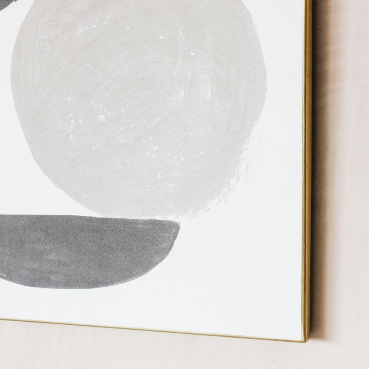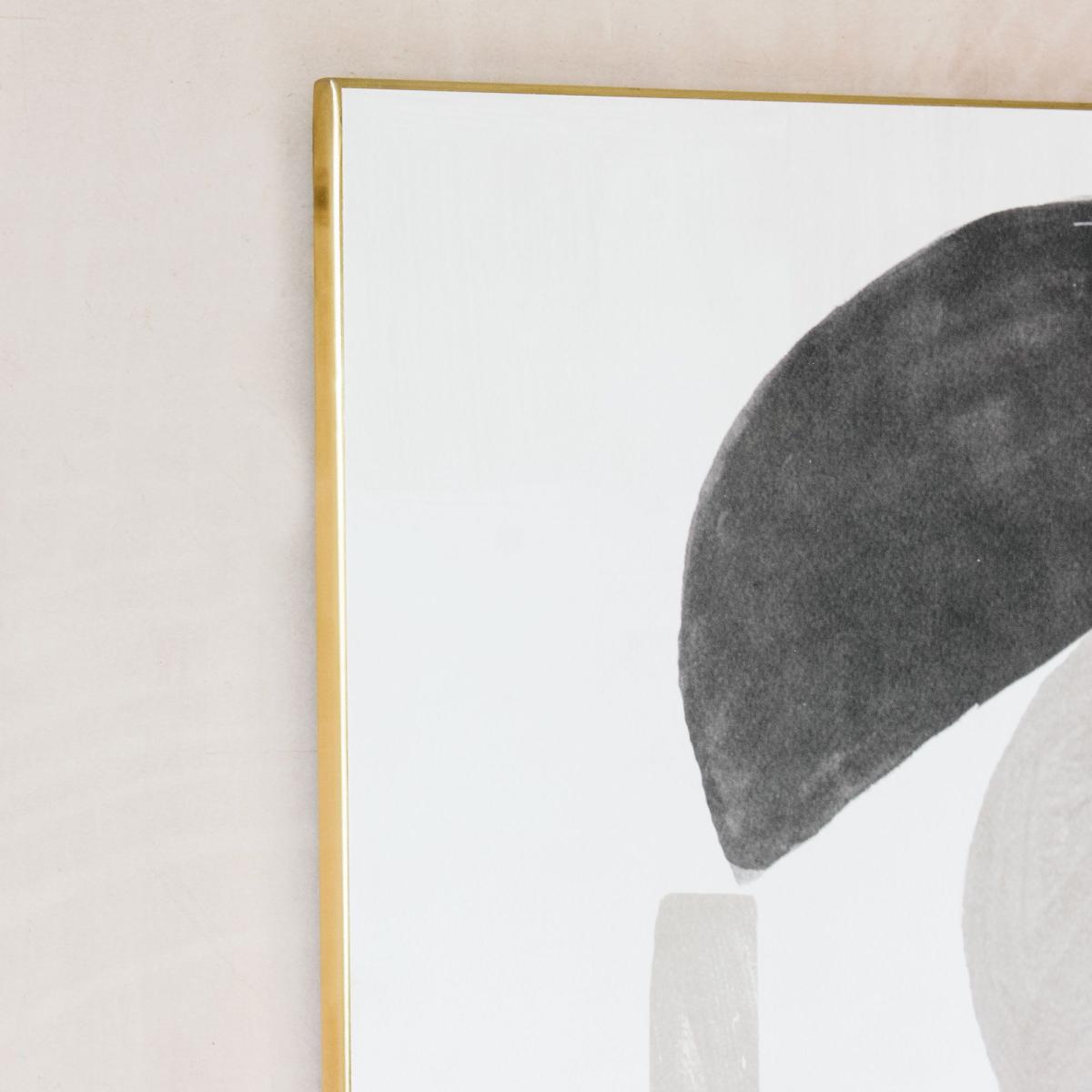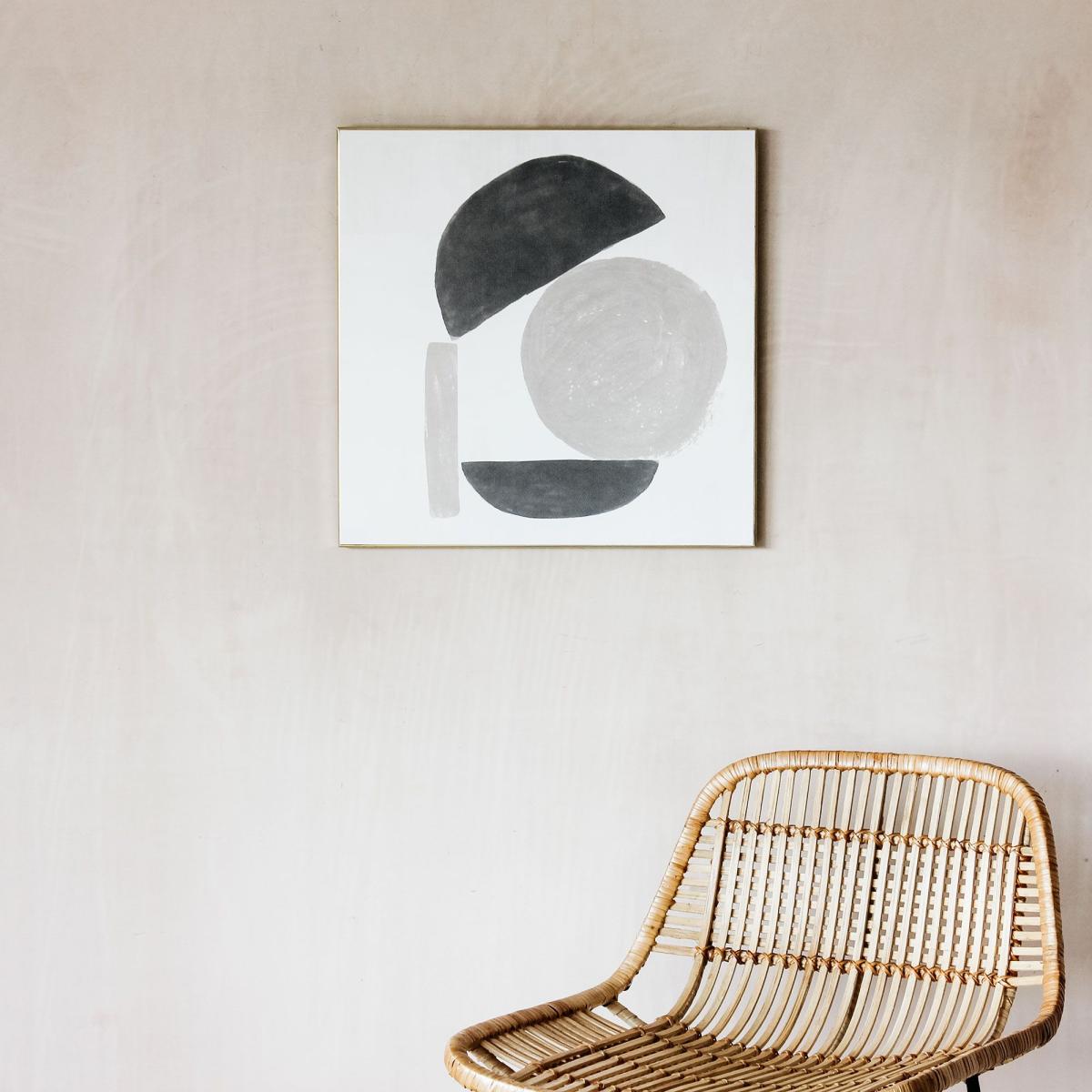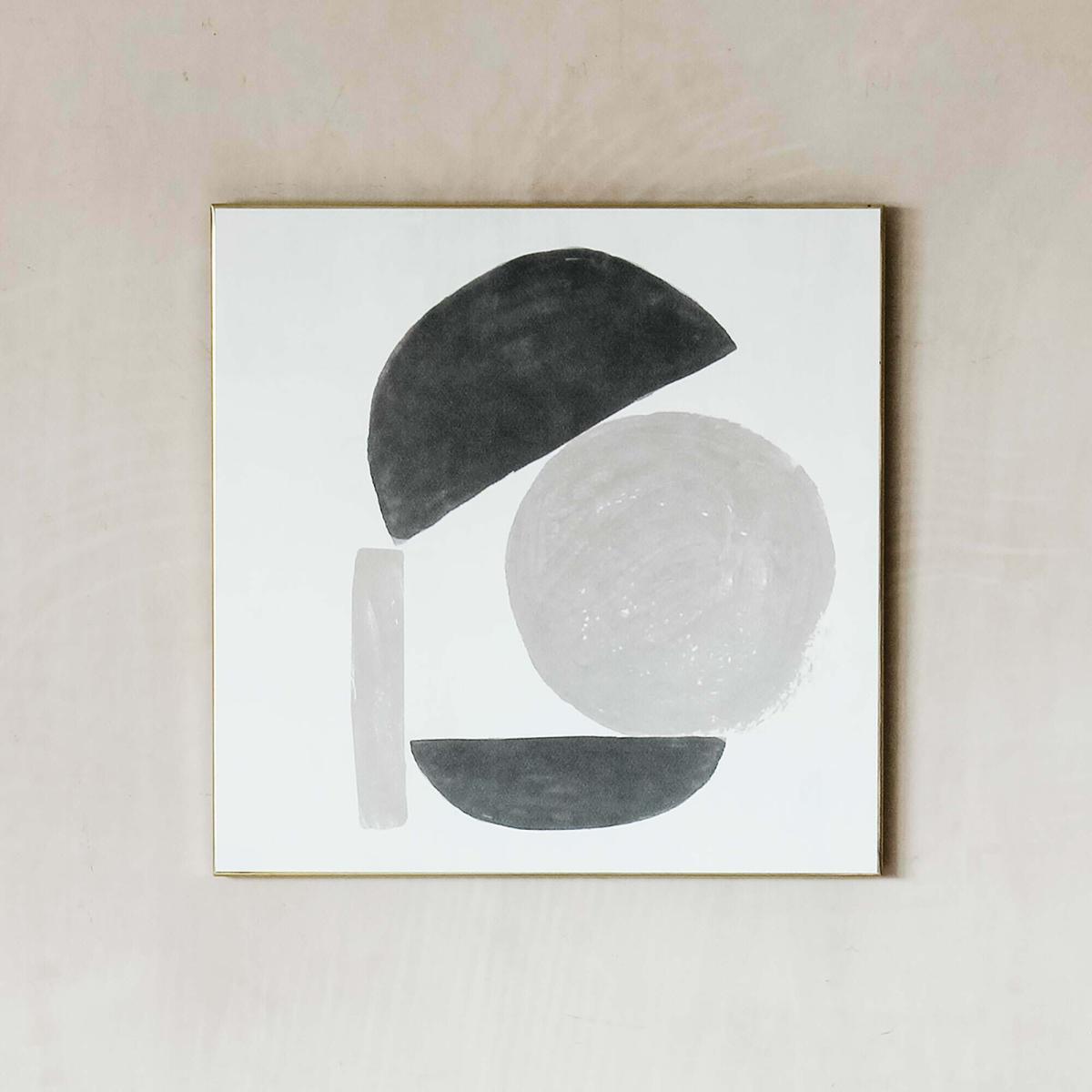 I love this piece for its clean, modern aesthetic and versatile neutral palette. It works particularly well in minimalist or contemporary interiors, but can also add a subtle artistic touch to more eclectic spaces. Position it above a dining sideboard or in a living room corner to create a focal point without overwhelming the room. Practical styling tips include pairing it with simple, monochrome accessories or incorporating it into a gallery wall for added interest. Keep the surrounding decor understated to let the shapes and textures of the print shine.