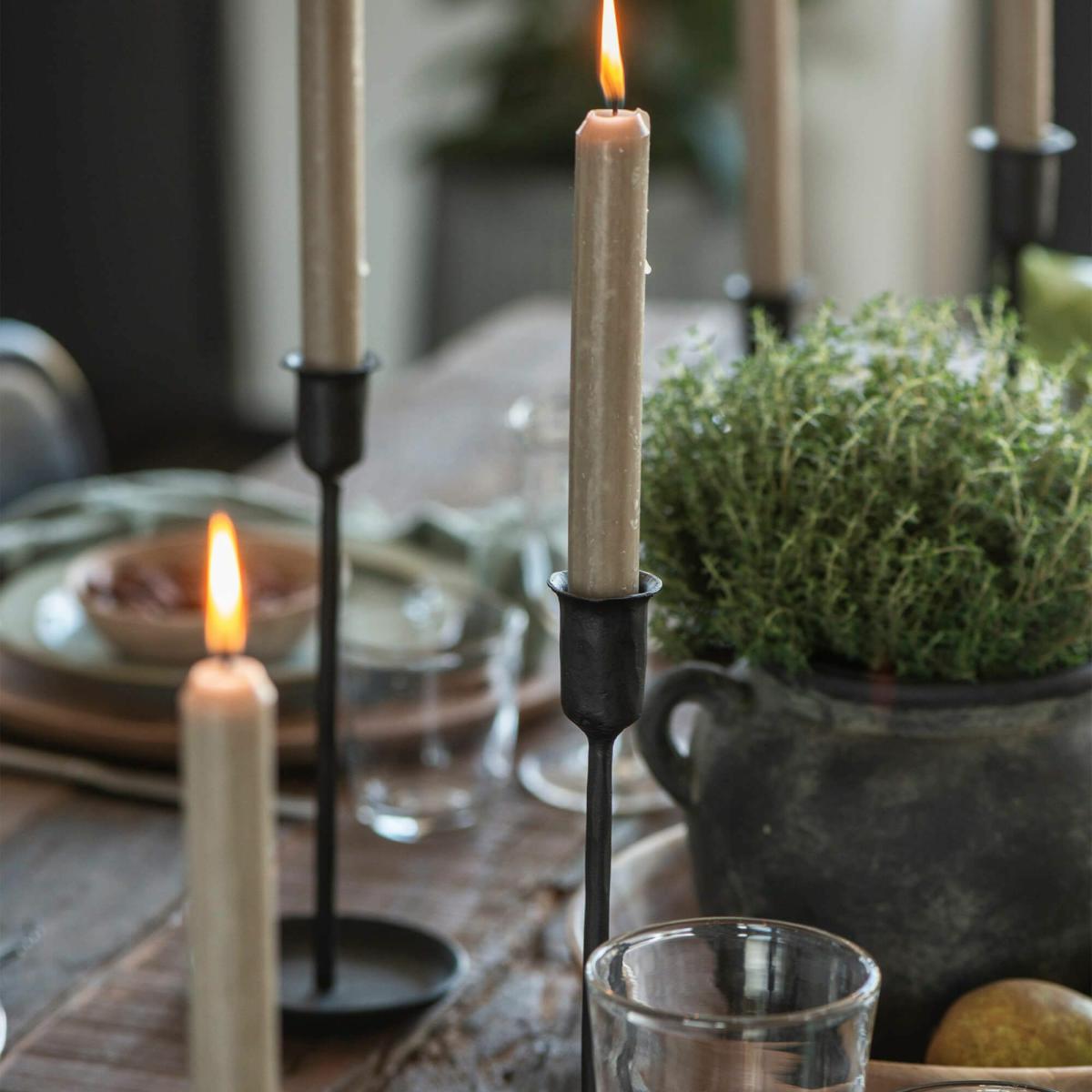 I love this candle holder for its sleek, industrial look that adds a touch of sophistication to both contemporary and vintage-inspired interiors. Its black iron finish makes it versatile enough to complement a range of colour schemes-think muted palettes or even bold accents. Practical styling tips include grouping it with other holders of different heights for visual interest or using it on a mantelpiece, side table, or dining table for a subtle, elegant statement. It works particularly well in minimalist, rustic, or darkly elegant settings, where its straightforward yet refined design can really stand out. Keep its surroundings simple to let the candle holder shine, or pair it with greenery or neutral textiles for a balanced look.