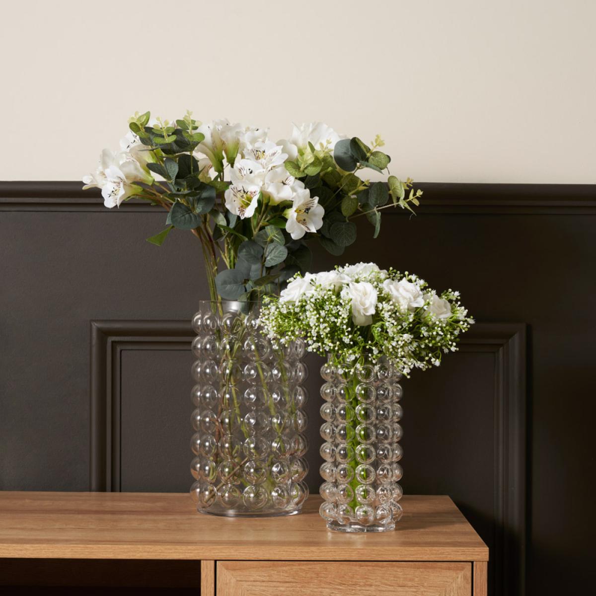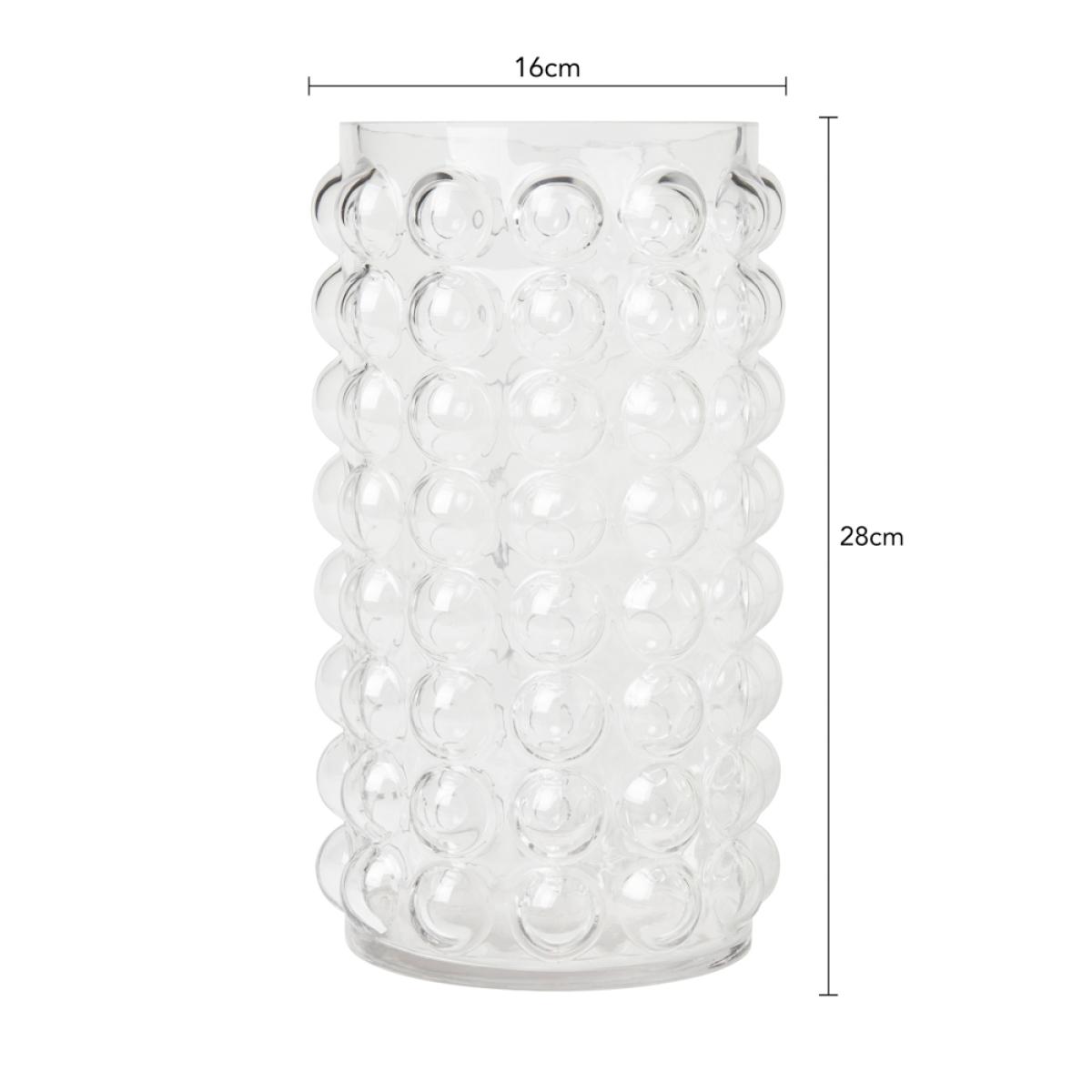 Showcase your floral displays in style with the Medium Bobble Glass Vase in a timeless Clear finish. Versatile in style and size, this vase complements any decor and adds a touch of sophistication to your home. The unique bobble design provides texture and a contemporary twist, while the clear glass allows your flowers to take centre stage. Medium size suitable for showcasing various flower arrangements; Unique bobble design for a modern and timeless aesthetic; Clear glass construction ensures a transparent elegance that complements any decor.