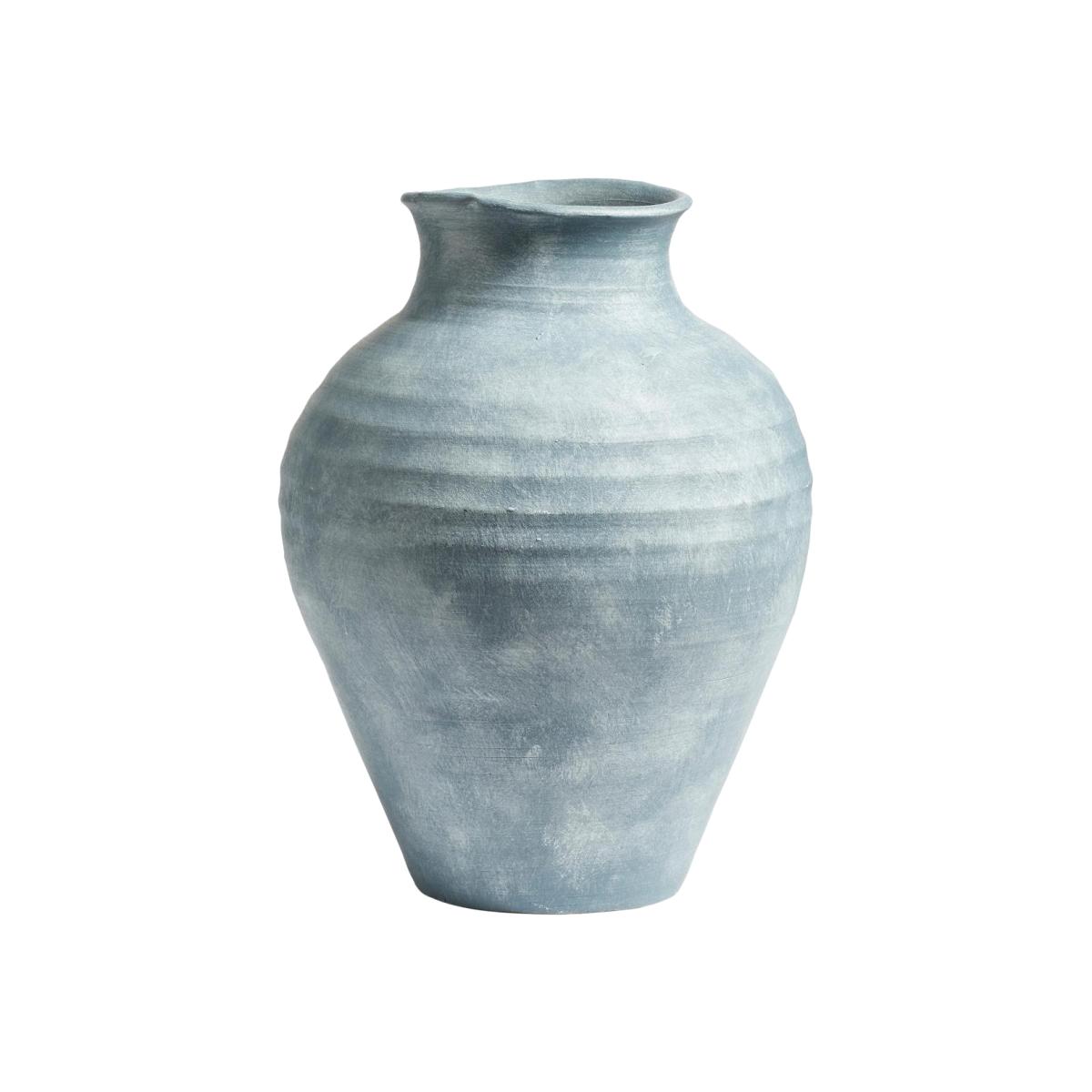 Our popular Fyli Range, reimagined in a fresh shade of blue: the minimal urn-shaped vase, made from a beautiful terracotta clay, is finished with a distressed, matte glaze. Please note: this vase isn't water safe, but it does make a striking decorative feature and could be used with a bunch of our incredibly realistic faux flowers.