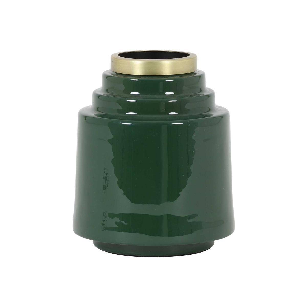 Design. With its smooth, glossy finish and tiered design, the Medium Green and Antique Bronze Steps Vase brings intrigue and beauty to bare surface spaces. Its rich, deep hue is dramatic and decadent, whilst the decorative metallic ring to the neck provides warmth and glamour. Styled with accessories of different shapes, sizes and colours, or sitting proudly as a singular accent piece, the Medium Green and Antique Bronze Steps Vasewill occupy the eye for years to come.