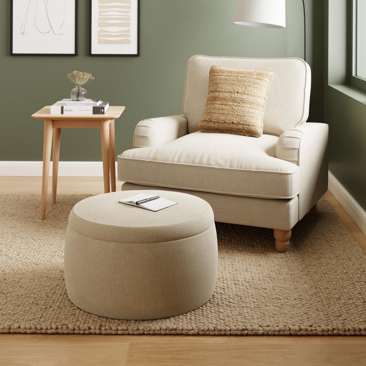 The medium round pouffe is a versatile piece that works well in numerous settings, from cosy living rooms to more contemporary spaces. I love its neutral Luna Natural tone, which makes it easy to mix and match with different colour schemes and furniture styles. It’s a great addition to create casual seating options or to elevate a layered look with textured cushions and throws. Practical styling tips include using it as a footrest in front of a sofa, or as an extra seat when entertaining. Its rounded shape offers a softer, more approachable aesthetic and it’s compact enough to tuck out of the way when not in use, making it a really functional and stylish choice for everyday living.