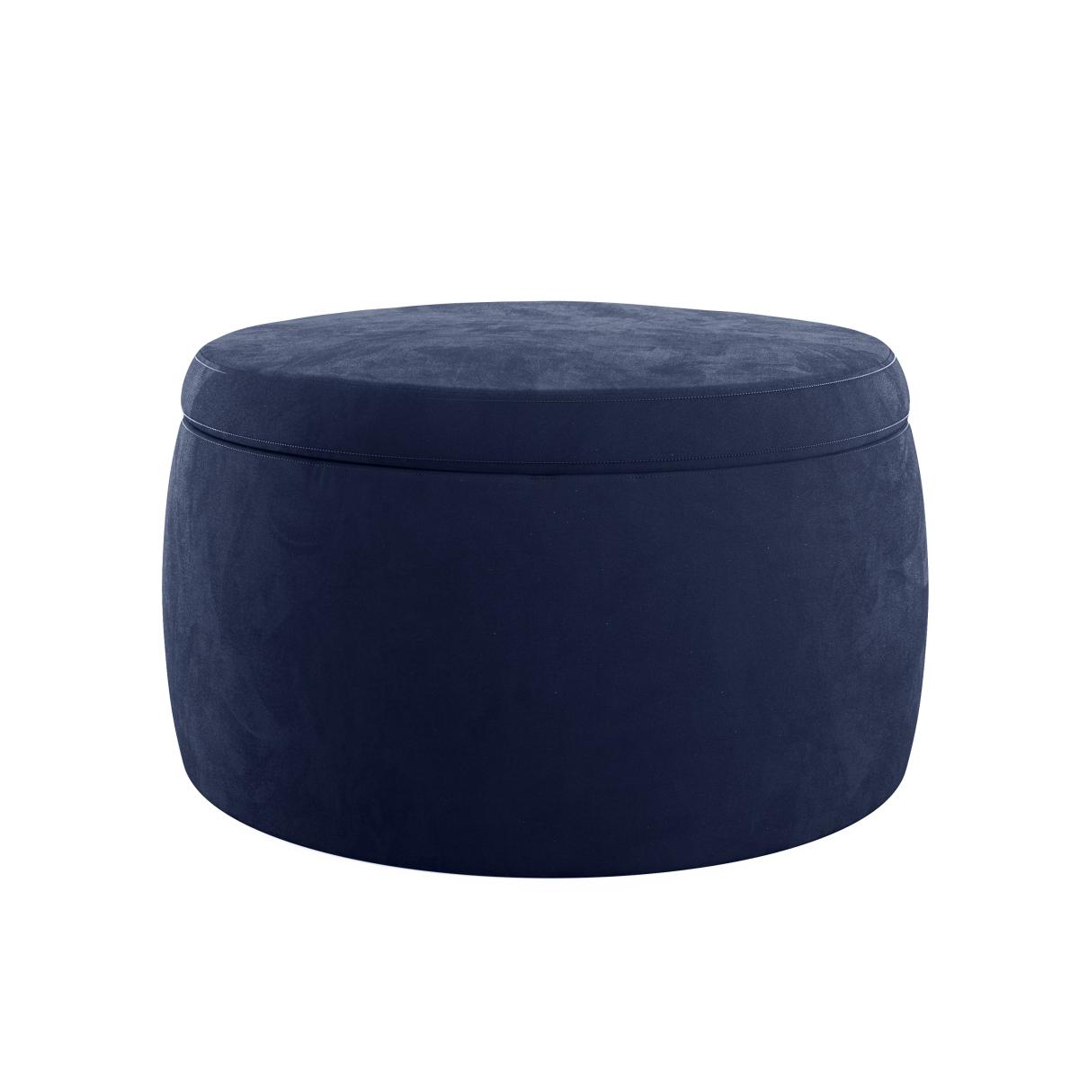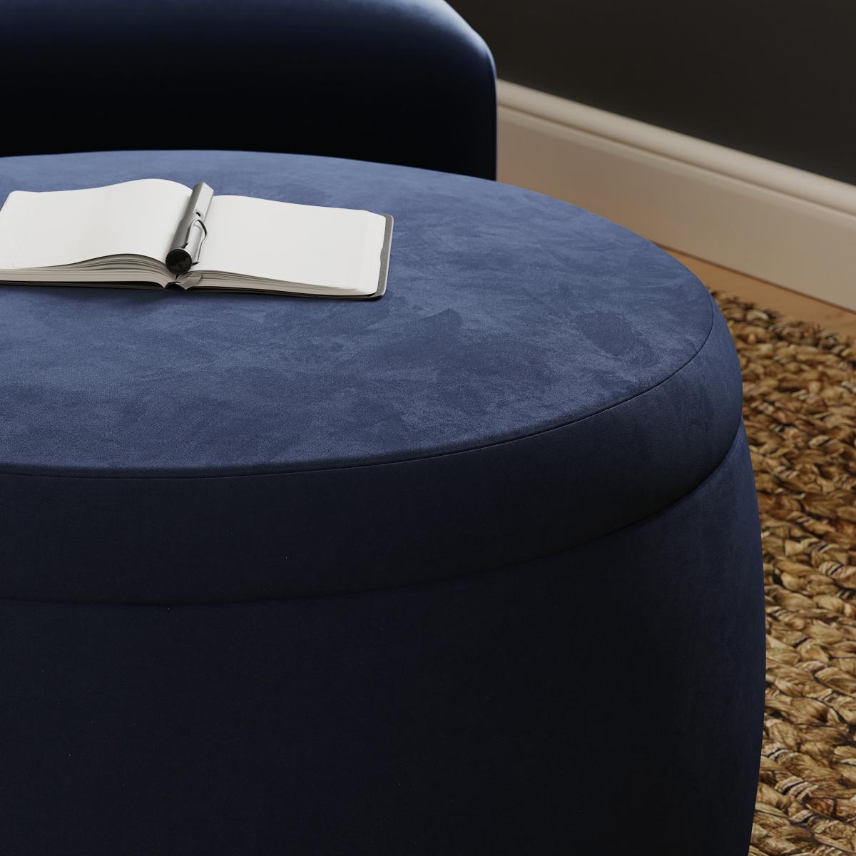 Medium Round Velvet Storage Pouffe Navy