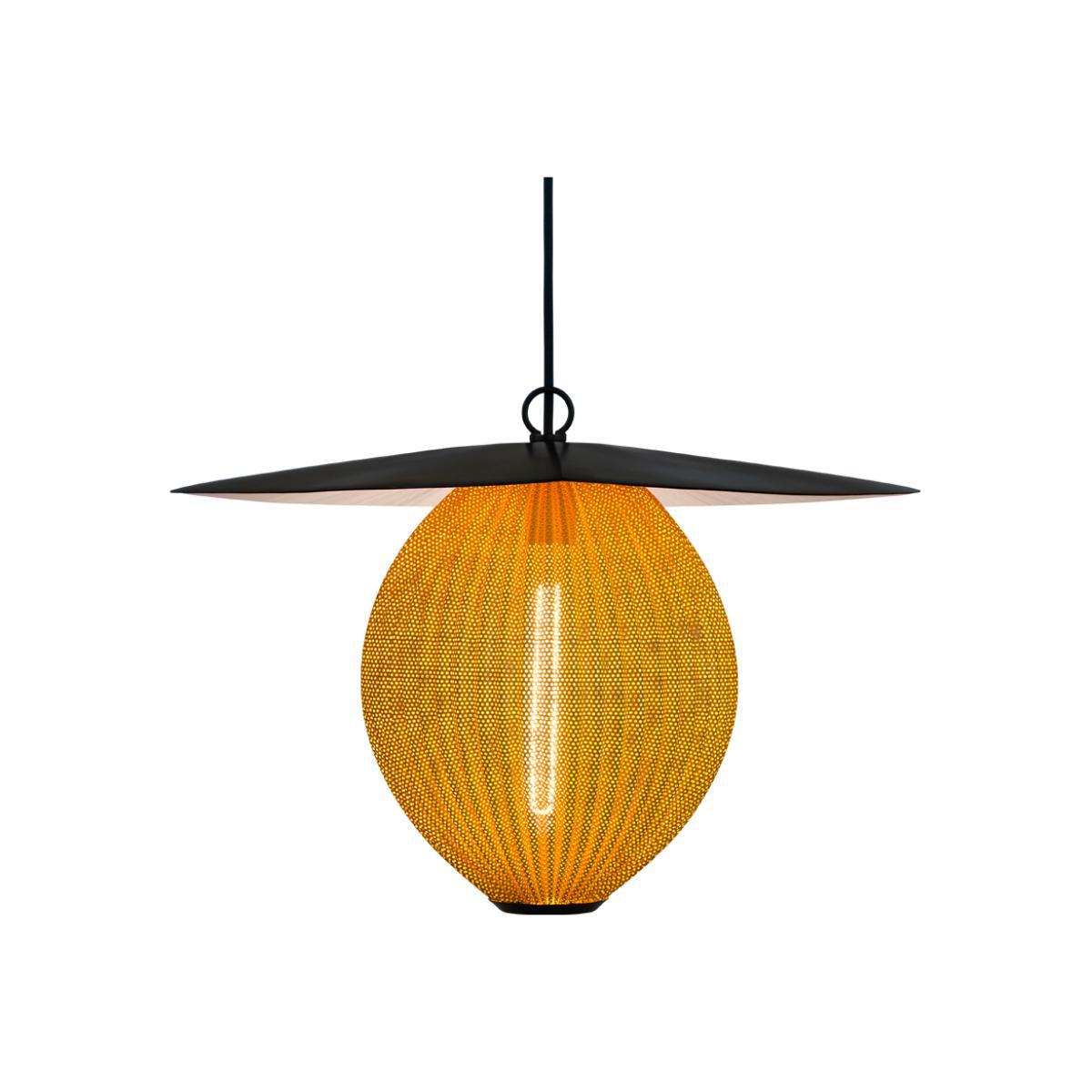 A sublime lighting statement, Mathieu Matégot's aptly named Satellite Pendant Light is as captivating as it was at its premiere, 70 years ago. Fashioned from a perforated metal sheet, the material is intricately bent like aglobe and elegantly topped with a metal 'hat. '. Mathieu Matégot was the first known person to combine metal tubing with perforated sheet metal; a pairing that particularly characterises his work. The organic and light forms in his work create a sense of enduring modernity. Requires: 1x max. 10W E27 LED bulb (included).