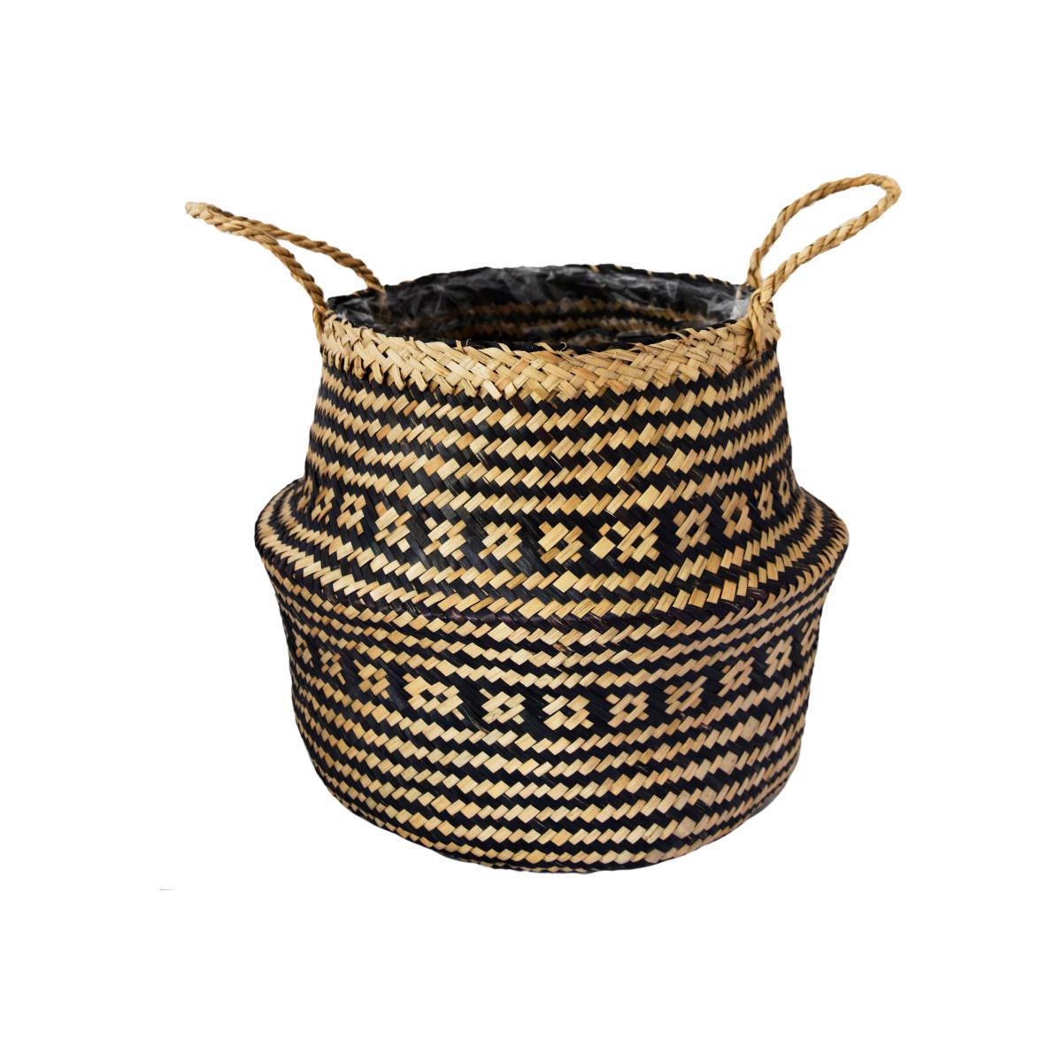 Medium Seagrass Tribal Black Lined Basket Black and Brown