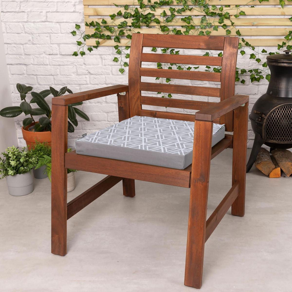 Say goodbye to bare chairs. Brighten up your space with this rectangle seat pad, a great way to add a sumptuous layer of comfort to your indoor or outdoor seating. Designed to elevate your seating experience, the cushion is soft to perch on, whilst being highly durable. Extend the life of your outdoor seat pad by simply wiping clean any spillages and storing them in a cool, dry place indoors. Ready to bring outside when the warmer weather arrives on fresh spring and bright summer days.