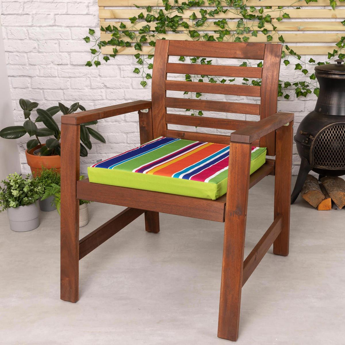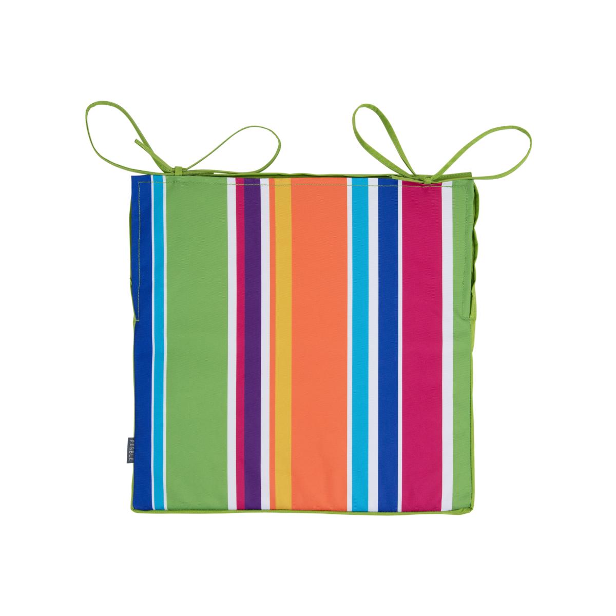 Suitable for both indoor and outdoor living spaces, this Seat Pad has a practical and chic design for adding comfort and style to the seat of a chair. Keep furniture comfortable with this thick, fibre-filled seat pad that gives an added touch of soft cushioning, as well as a look of elegant style. This seat pad is quick and simple to wipe clean and keep looking fresh during summer BBQs or garden parties. Features two matching coloured ties at the back for securing to furniture simply tie on to attach and enjoy the comfort of this foam-filled seat pad.