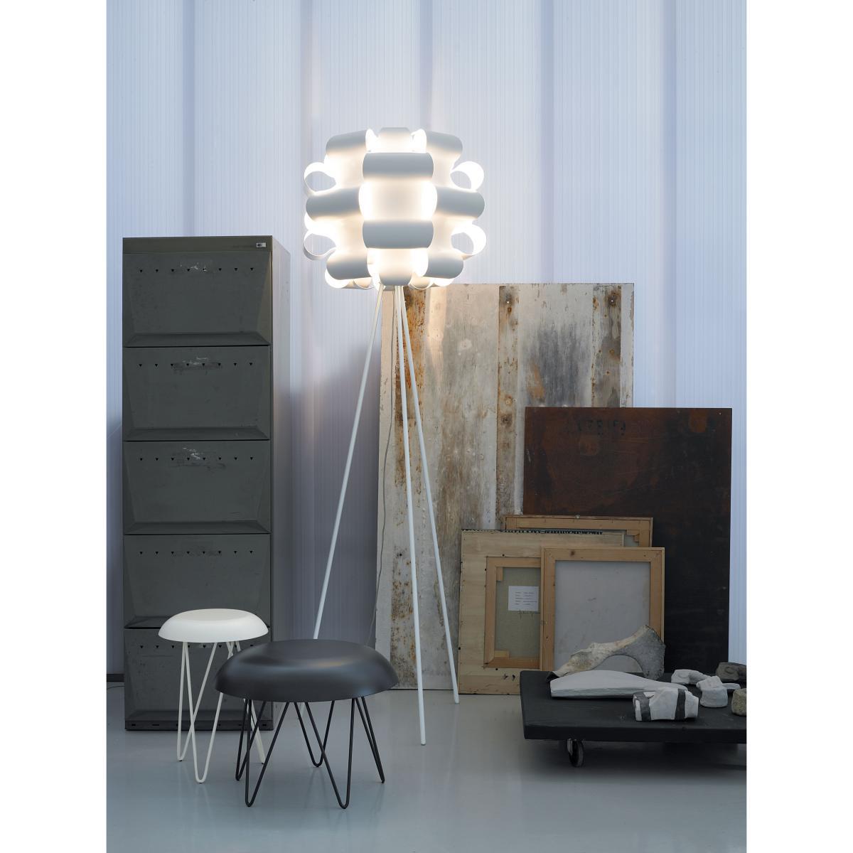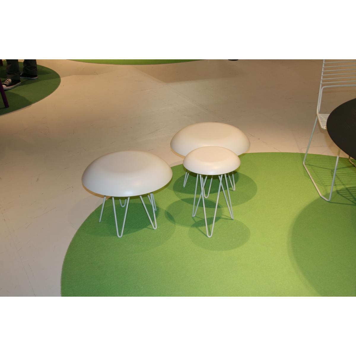 Stool/ottoman inspired by the iconic form of the jellyfish (‘medusa' in Italian) The soft rounded body is padded and upholstered over an varnished metal internal structure from which the varnished metal tentacles are suspended.