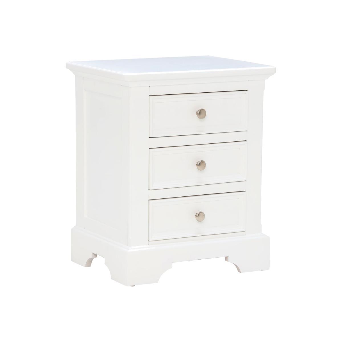 Design. A stylish spot to stow away your night-time essentials, the. Medway 3 Drawer Bedside has a stunningly timeless look that makes the most of subtle contours, a striking white finish and a dainty chrome handles. Perfect for both modern and traditional decors, the Medway includes 3 handy sliding drawers that are great for storing your favourite night time reads and other possessions.