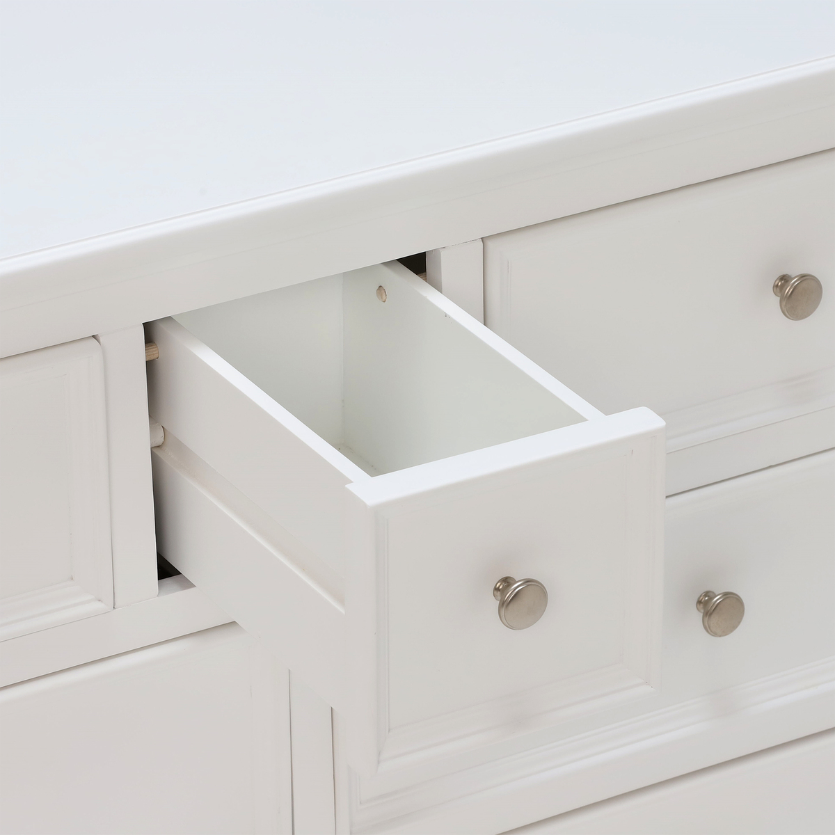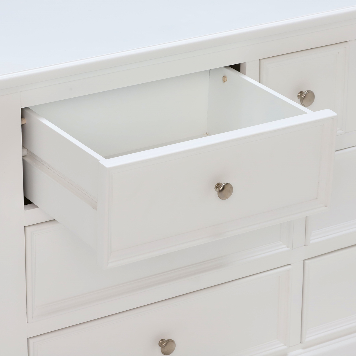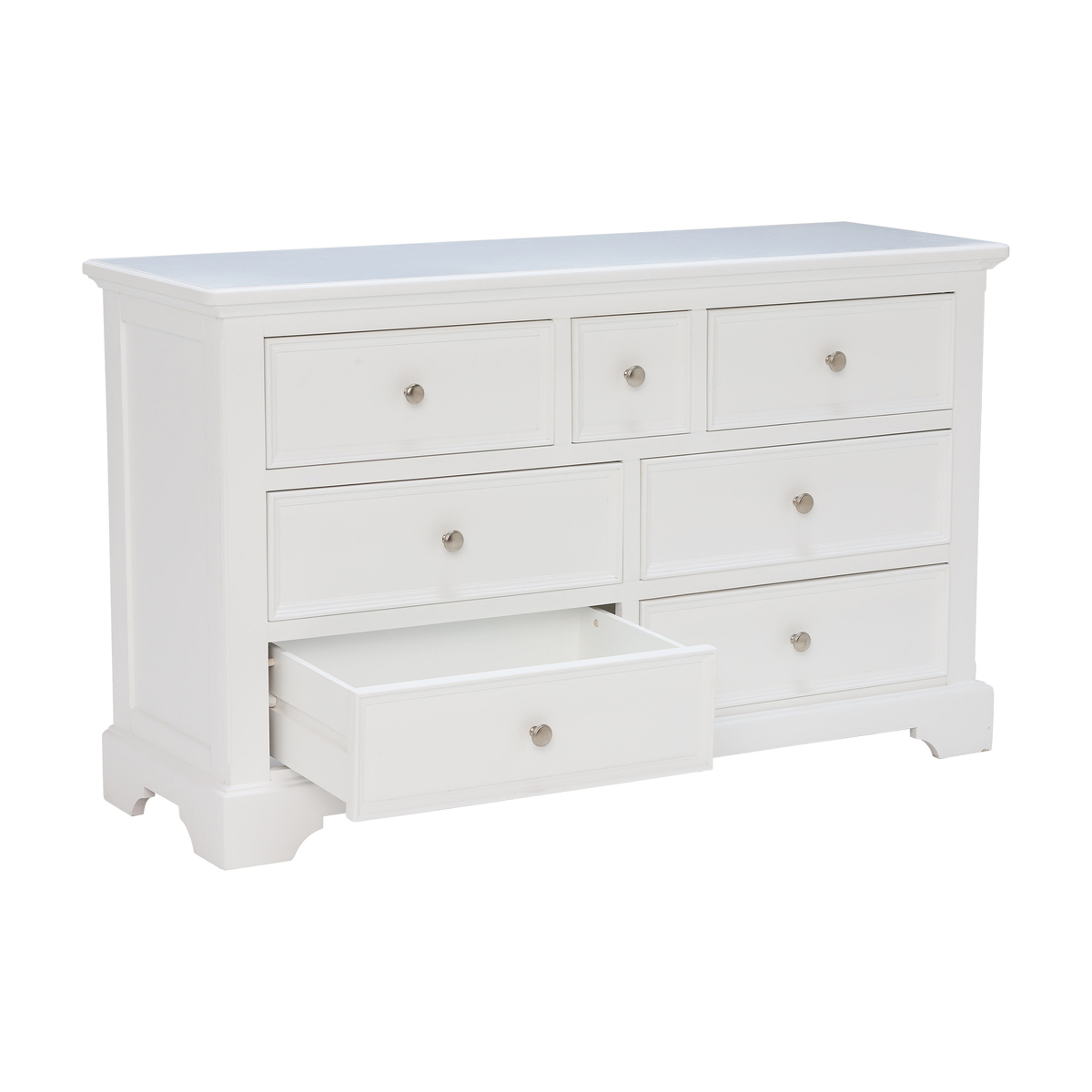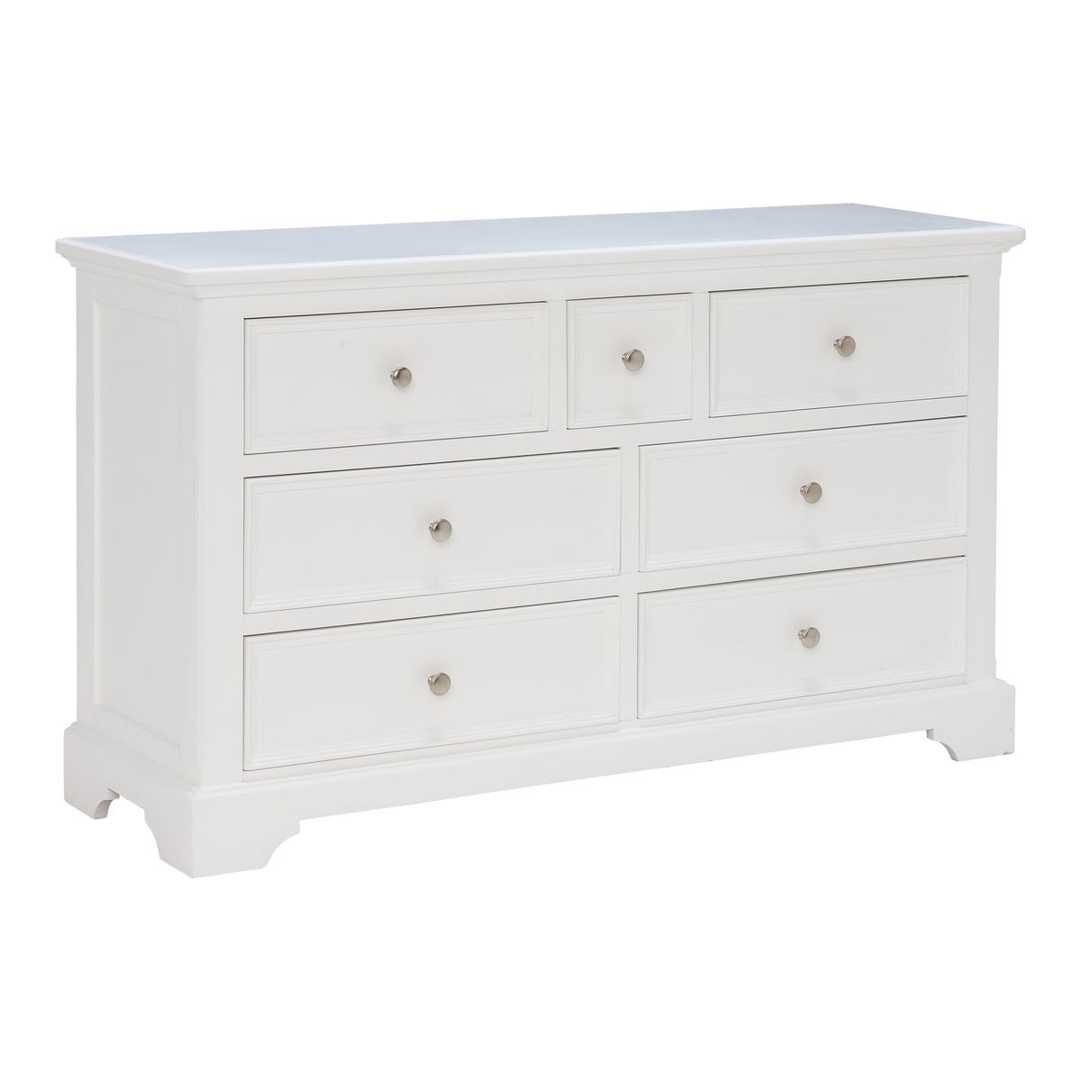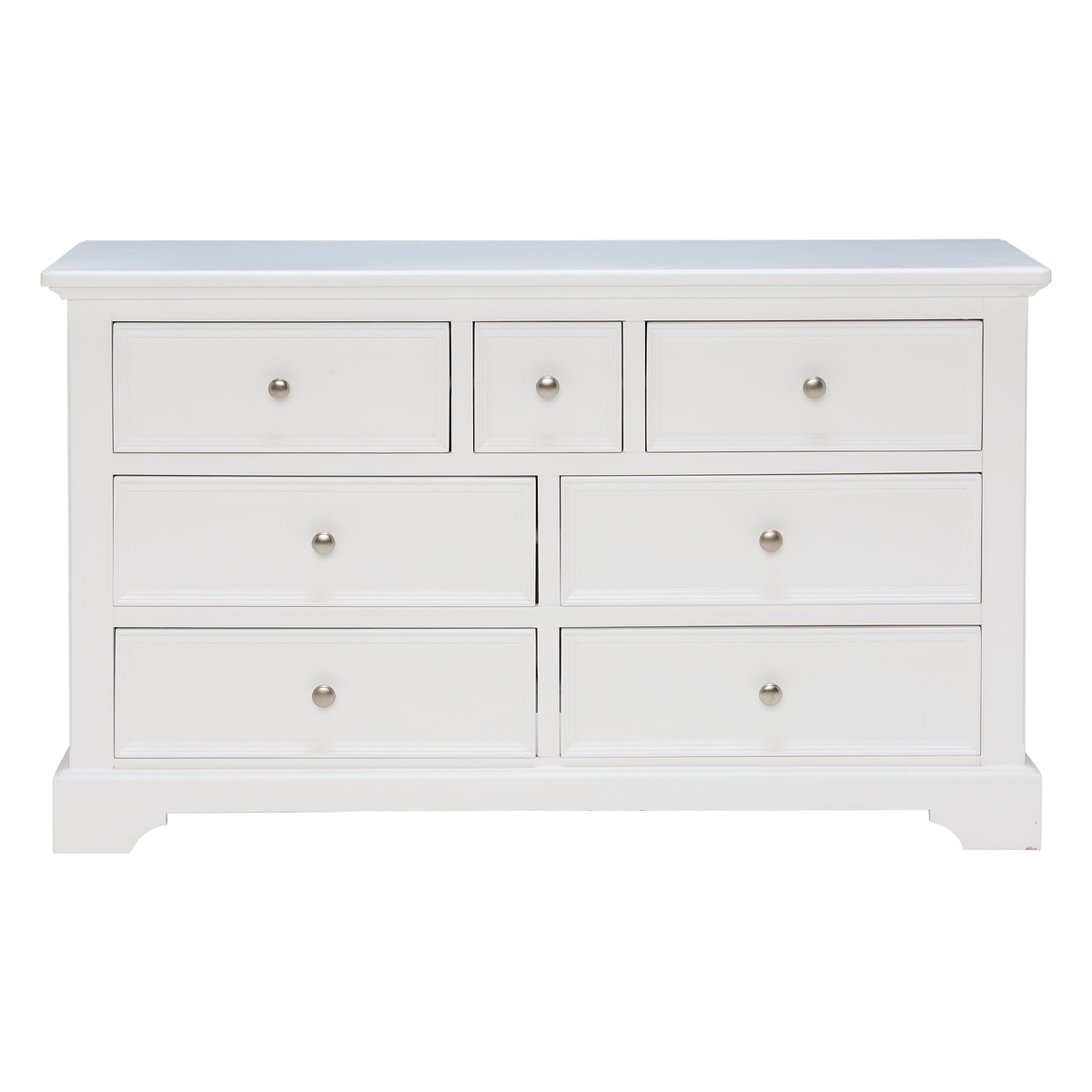 A practical wide chest, the Medway includes 3 different sizes drawers that provide perfect storage for a range of possessions. Featuring a classic style that complements both traditional and contemporary homes, the Medway has a simple design that makes the most of graceful contours and a stunning white painted finish that gives it an eye-catching elegance. Providing ample amounts of stylish storage through its varied practicality, why not utilise the Medway’s lower drawers for clothing or linens, leaving the upper drawers available for accessories, jewellery and other bedroom essentials.