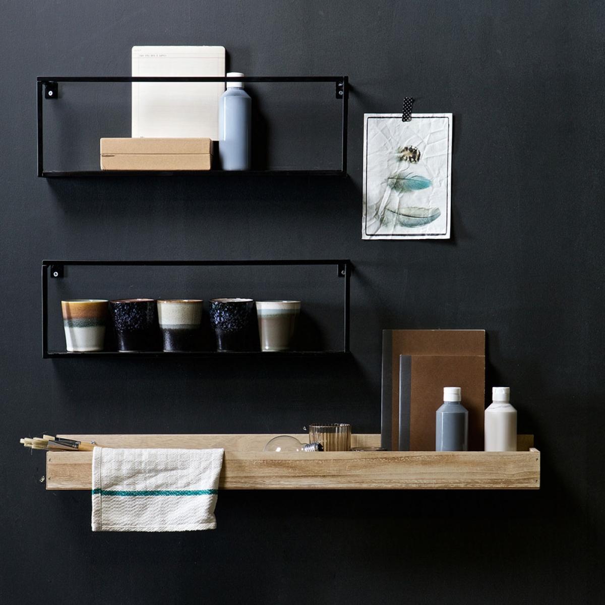 Put your goods on display with the Meert Slim Wall Shelf Woood, perfect for adding some extra storage without compromising on floor space. With its simple metal frame and black finish, it is sure to suit any interior style. Available in two sizes, this shelf will work wonderfully on any wall. In the living room, dining room or the kitchen, whether it's to hold that selection of herbs, little knick-knacks, or family photos, this shelf will have no trouble holding them. With other shelving available in the Meert range why not create coordinating storage throughout your home.