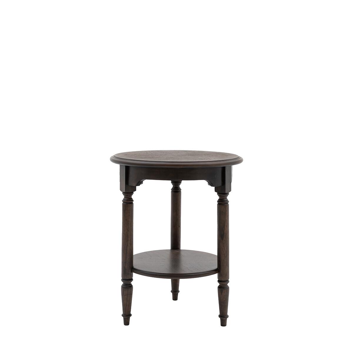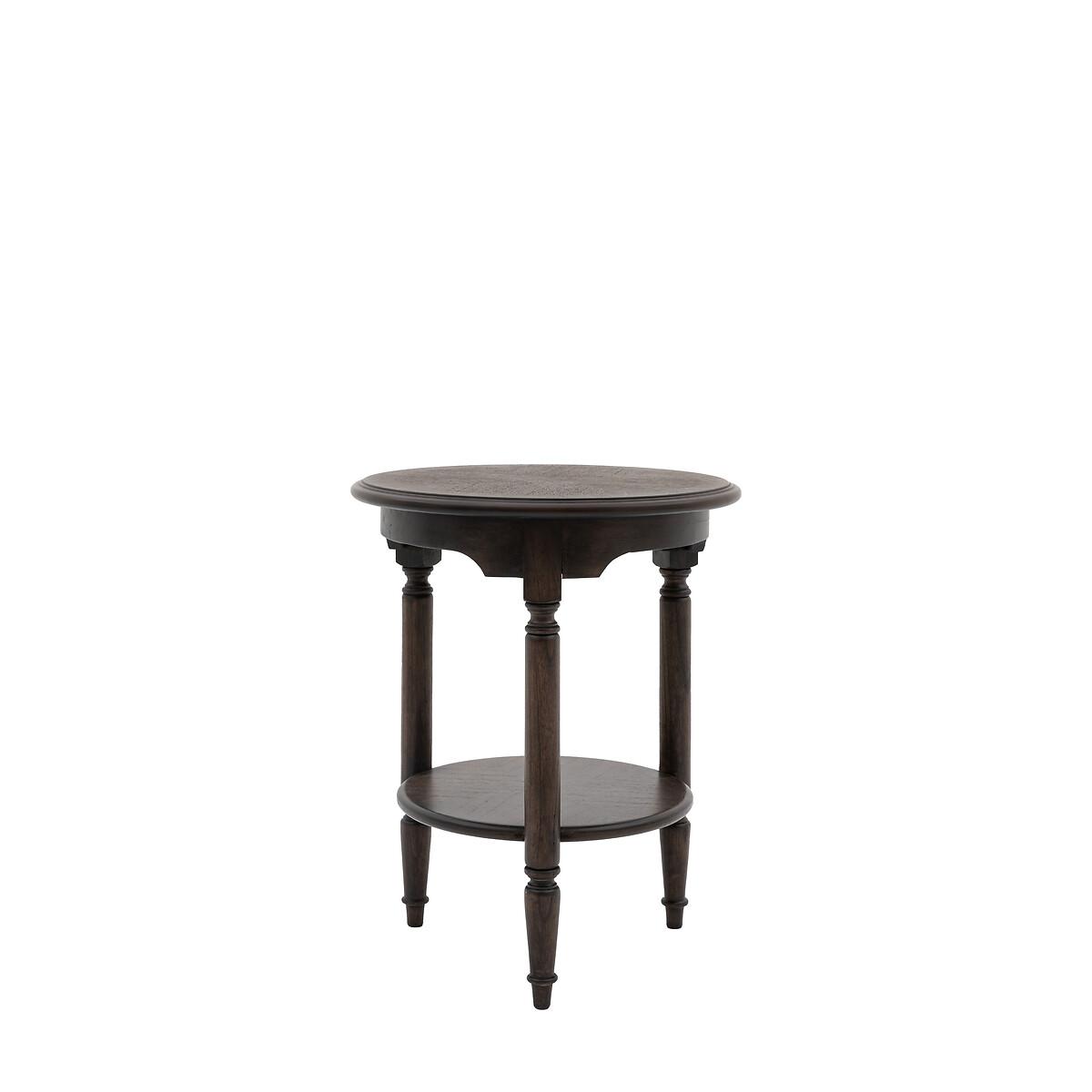 Offering a new traditional look, with a timeless, elegant style and modern touch, this stunning side table features exquisite dark salvaged coffee coloured Mindi wood solids & veneers. The book matched marquetry detail and turned spindle legs create a stunningly elegant side table. Product Details:• Made from solid mindi wood• Round shape• Lacquered finish• Delivered fully assembled• 1 year manufacturers warranty. Product Composition - Mindi / MDFProduct Dimensions - 56 cm x 56 cm x 71 cm, Weight 13.5 kg Leg height - 19 cm Package Dimensions - 71 cm x 56 cm x 56 cm, Weight 13.5 kg. This product will be dispatched by one of our trusted suppliers. You’ll be contacted by their selected courier about your delivery. Please note: this product cannot be delivered to all Offshore Islands, Northern Ireland or Republic of Ireland.
