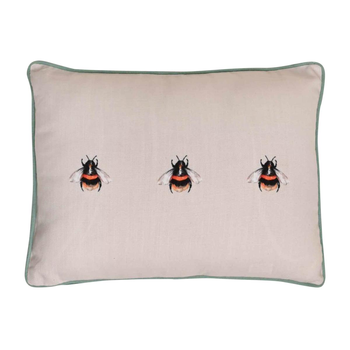 * Printed rectangular cushion* Meg Hawkin’s Watercolour illustration* Traditional Wild Hare design* Wooden button closure* Corresponding items available Add a touch of charm to your living space with this lovely cushion featuring a delightful Meg Hawkins bee illustration. Designed for both beauty and comfort, it comes with a plump polyester fibre filling and charming wooden button details. As part of the Meg Hawkins home wear collection, you can easily find matching items to complete your home's aesthetic.