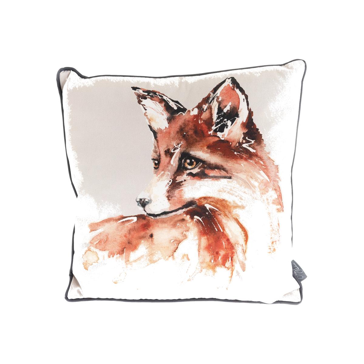 * Printed square cushion* Watercolour illustration* Adorable fox design* Zipper closure* Matching doorstop available Bring a touch of the countryside to your home interior with this delightfully decorative cushion from the Meg Hawkins stylish homeware collection. Inspired by wildlife and nature, it features an adorable fox illustration in a watercolour style, adds a cosy touch to your sofa, living room or conservatory as well as a grey background and dark grey piping edge to uplift your home décor.