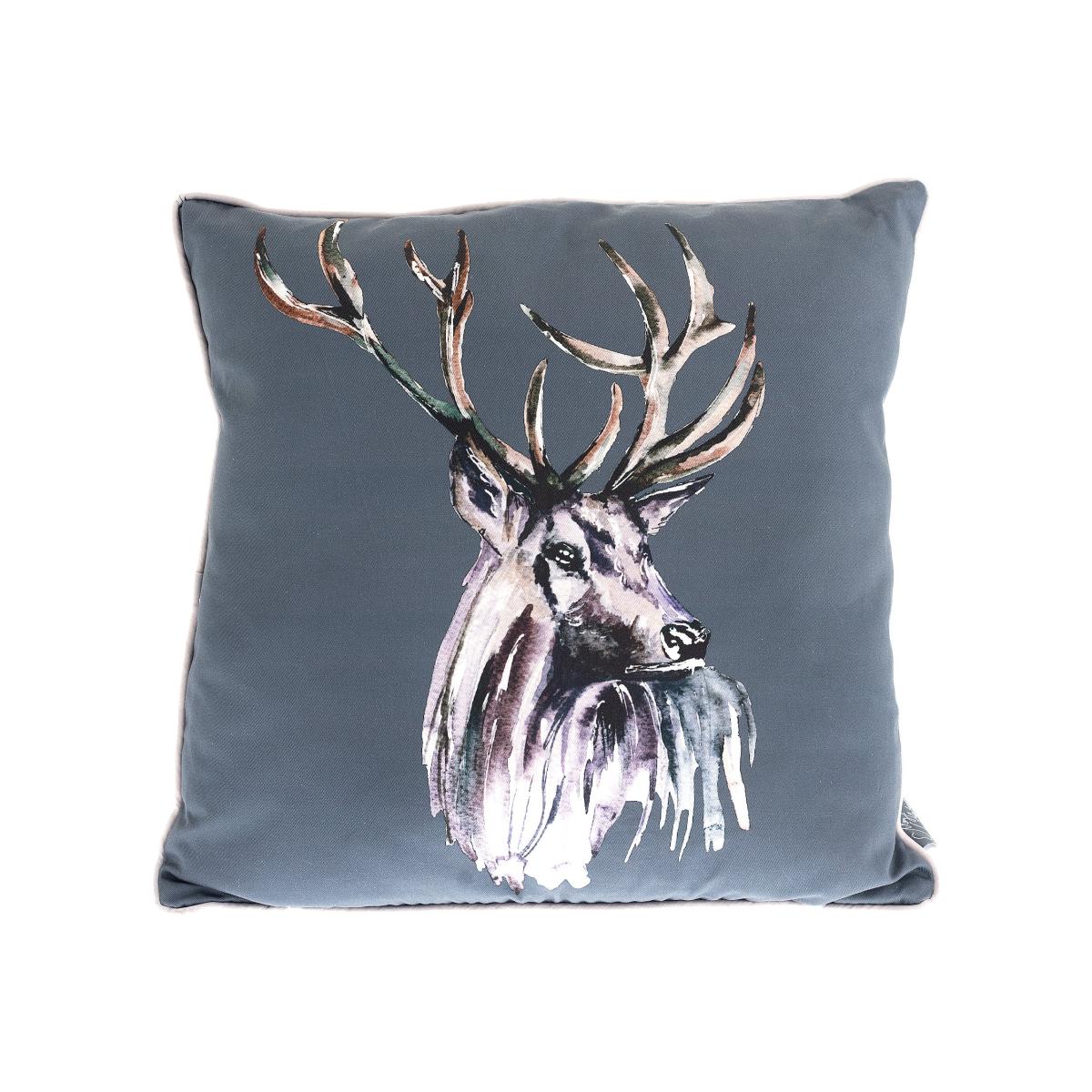 * Printed square cushion* Watercolour illustration* Statement stag design* Zipper closure* Matching doorstop available Bring a statement look to your home with this bold cushion from the Meg Hawkins stylish homeware collection. Inspired by wildlife and nature, it features a brave stag illustration in a watercolour style, adds a cosy touch to your sofa, living room or conservatory as well as a warm grey background and silver grey piping edge to uplift your home décor.