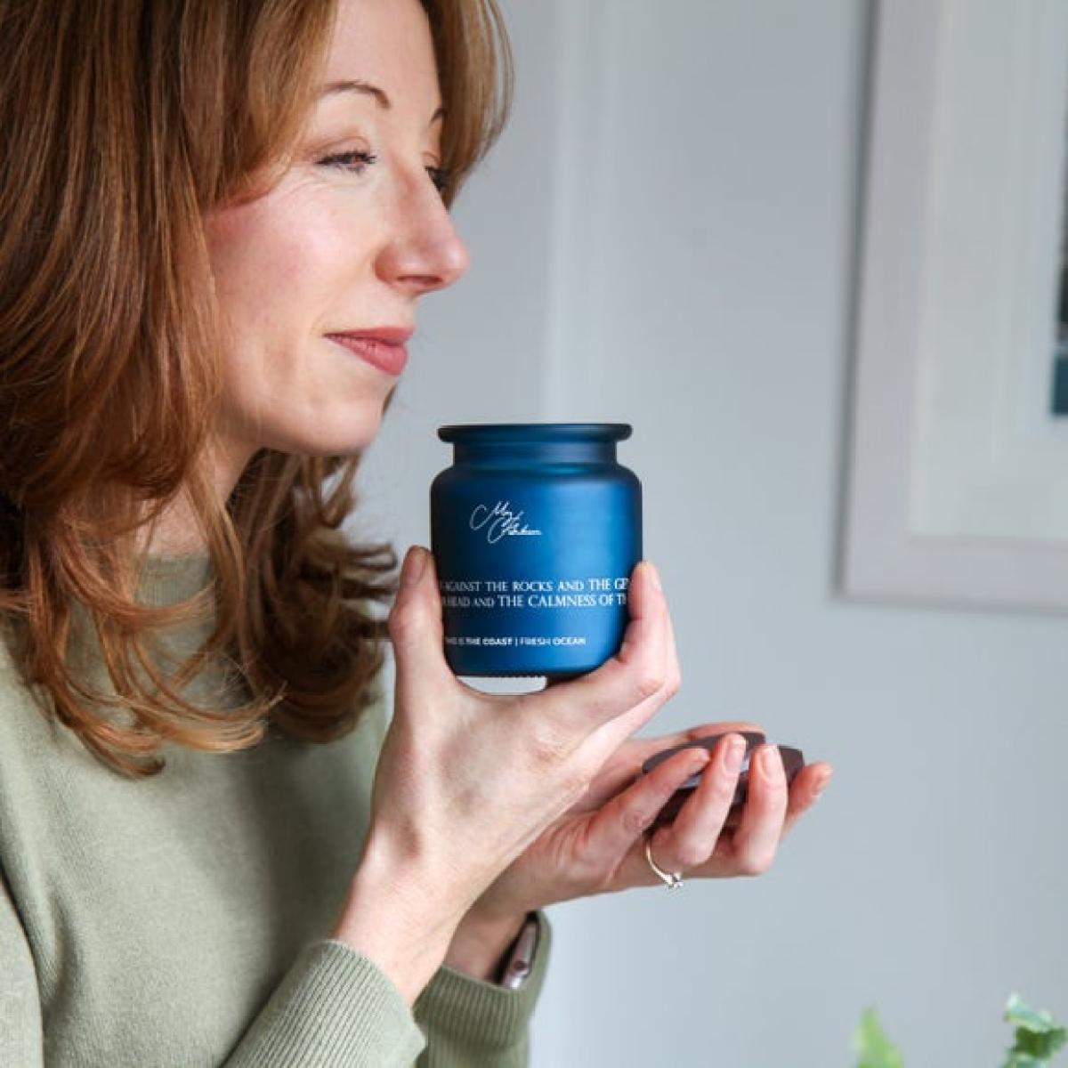 I love the Meg Hawkins Coast Puffin candle for its clean, understated aesthetic, making it versatile for a variety of interiors. It works particularly well in coastal or Scandinavian-inspired spaces thanks to its subtle blue packaging and calming vibe. For styling, place it on a minimalist tray or alongside natural elements like shells or driftwood to enhance its seaside appeal. It’s a practical piece that adds a cosy touch without overpowering the space, making it ideal for mantels, side tables, or even a bathroom shelf. Just remember to keep it in view as a decorative accent that also offers lovely, fresh scent when lit.
