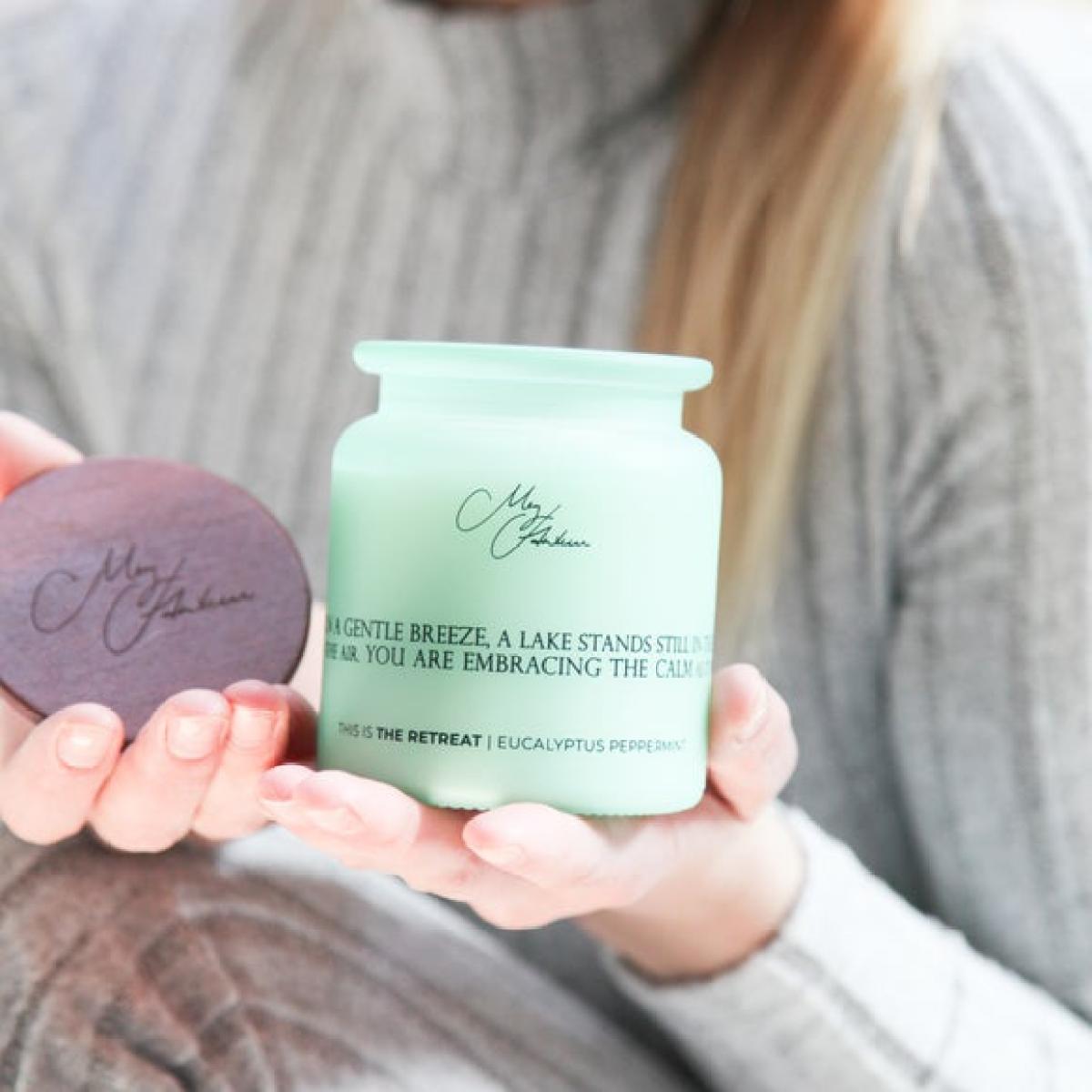 * Spa-like Eucalyptus & Peppermint scent * Meg Hawkins’ kingfisher watercolour artwork * 40+ hours burn time * Soy wax glass candle Create a calming sanctuary with The Retreat Soy Candle, blending crisp eucalyptus and cool peppermint for a fresh, spa‑inspired scent. Housed in a simple glass vessel, it’s finished with Meg Hawkins’ elegant kingfisher artwork for a touch of nature. With around 40+ hours of burn time, it’s perfect for unwinding after a busy day.