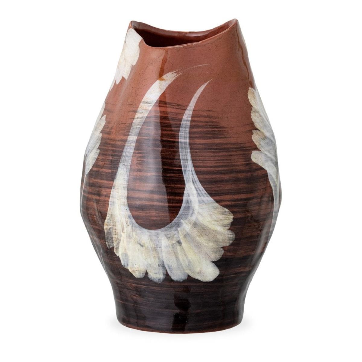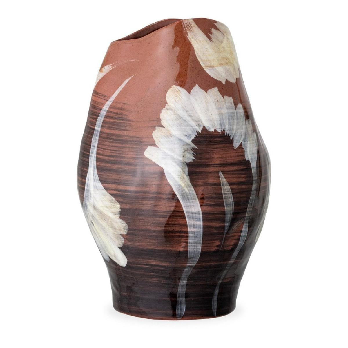 A unique, handpainted piece, this vase features a modern design in a mix of brown nuances and white strokes that together create a stunning decorative piece with artistic flair. The wide opening makes it the perfect size for your floral bouquets, but also works well on its own as a attractive piece of home decor. Home decor made from stoneware and ceramics are highly durable with a very long lifecycle that uses zero toxic materials in the process, making it sustainably-preferred when searching for the perfect pieces for your space.