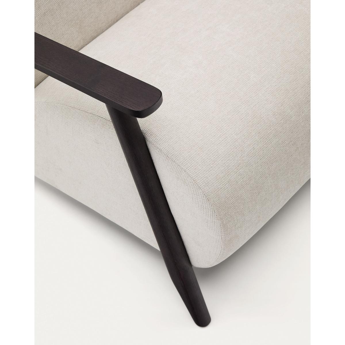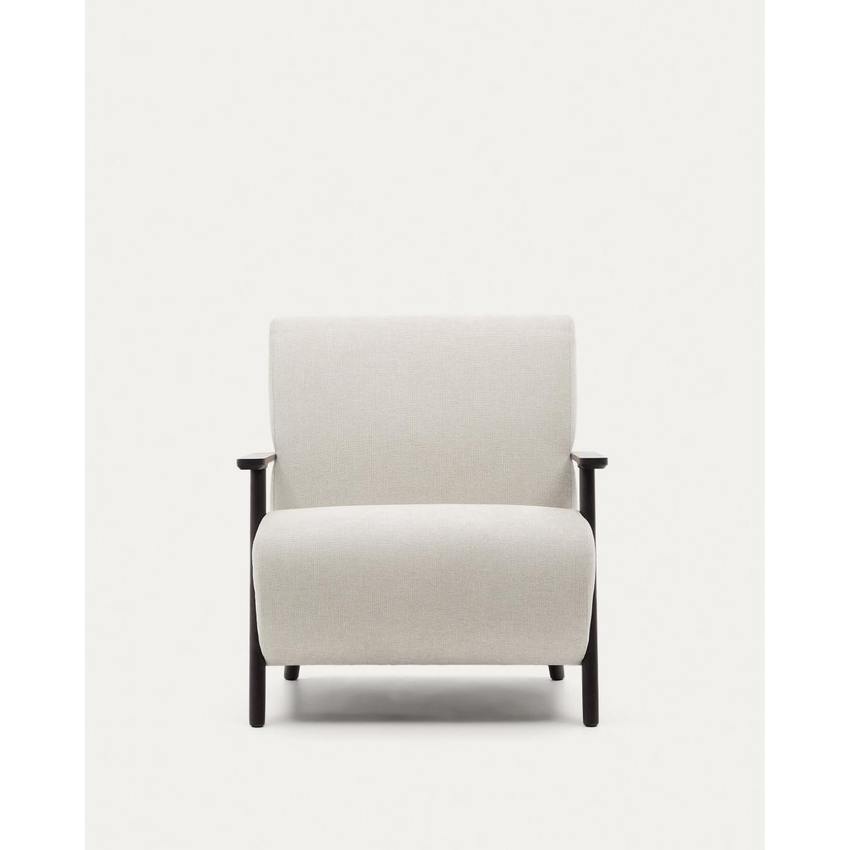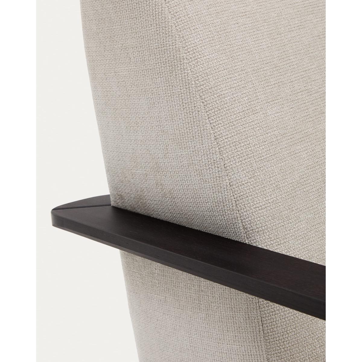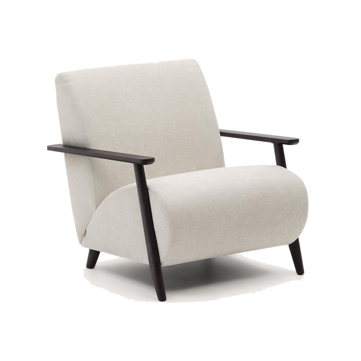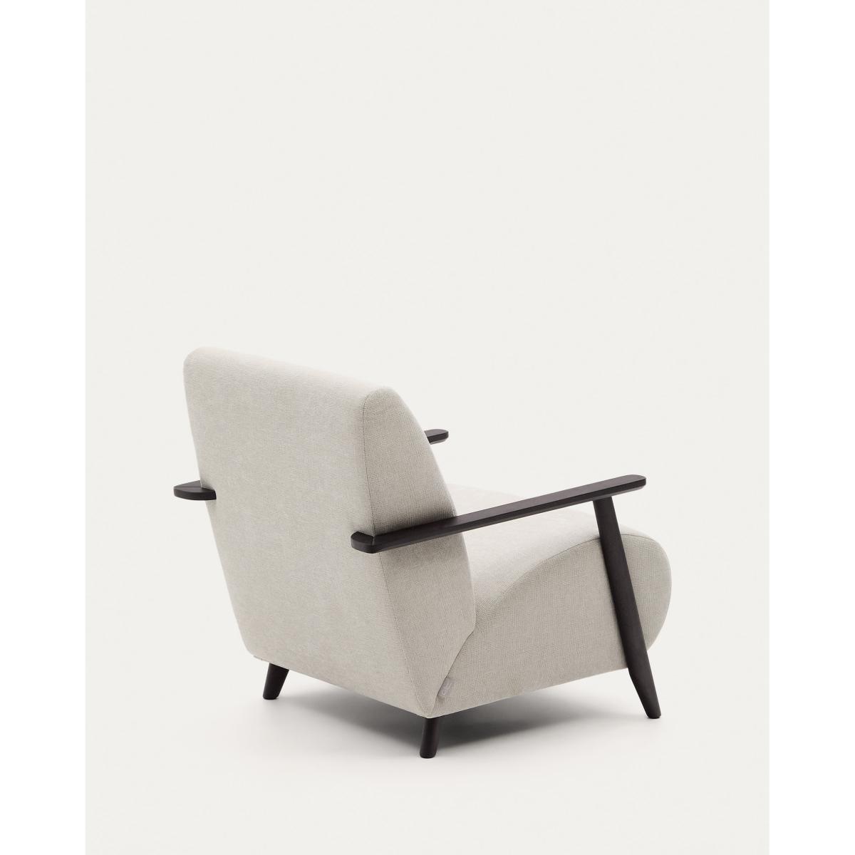 Meghan armchair in pearl chenille and with solid beech wood in a wenge finish