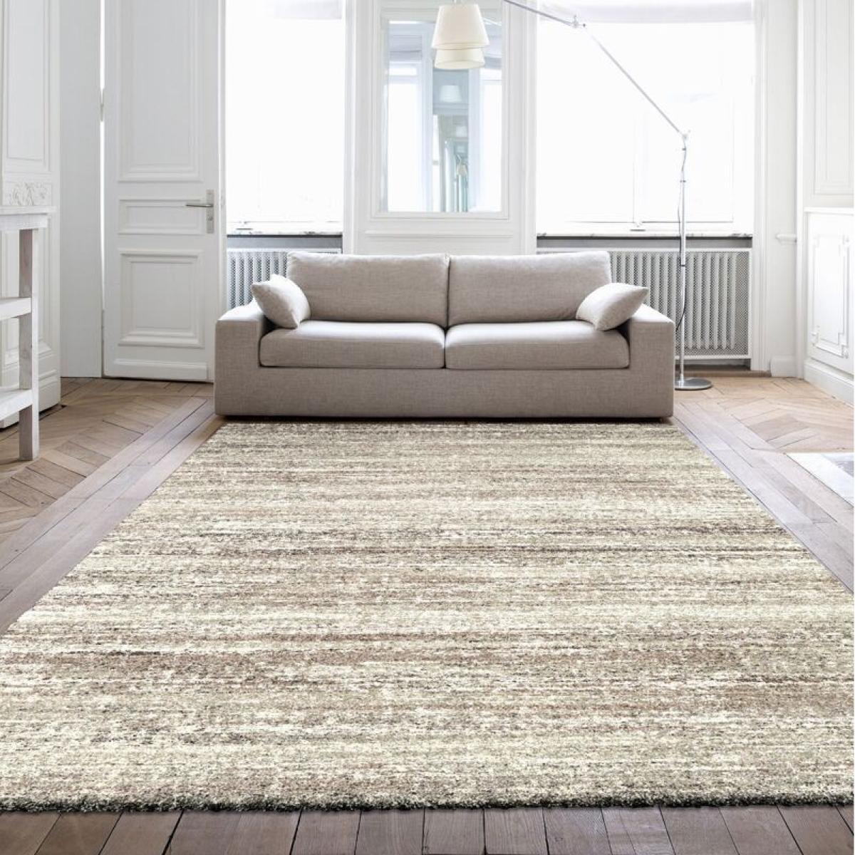 Super thick and super soft. This beautiful, modern rug feels extremely comfortable underfoot. It features a worn, striped design in an array of beige tones. Not only will this Mehari Rug contribute to your homes modern interior but it will also provide warmth and comfort, thus being the perfect accessory for any room. Available in a variety of sizes. Also available as a hallway runner100 Polypropylene Heatset amp; Jute