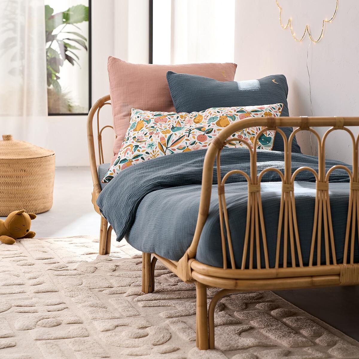 I love the Meïdo Rattan Bed for its natural, light texture, which adds warmth and a touch of boho charm to a child's bedroom. It works particularly well in interiors that blend coastal, Scandi, or laid-back retro styles, creating a calming and inviting space. Styling tips include pairing it with neutral beddings and soft textiles for a cosy feel, or adding colourful cushions and a playful canopy for a more vibrant look. It's versatile enough to suit both modern and traditional interiors, and its airy rattan frame helps keep the room feeling bright and spacious.