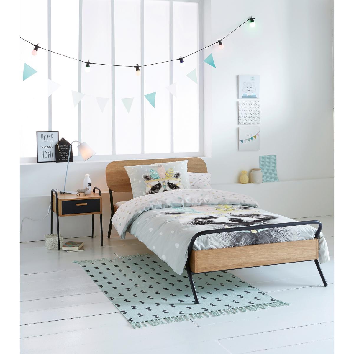 Meiko Printed Duvet Cover: Meko the raccoon scurries with a mischievous air from his little log cabin on the edge of a North American lake to your children's bedrooms. Team it up with the rest of the bedding in the range. And mix and match with different colours and designs from our other ranges to add your own unique style to the bedroom.