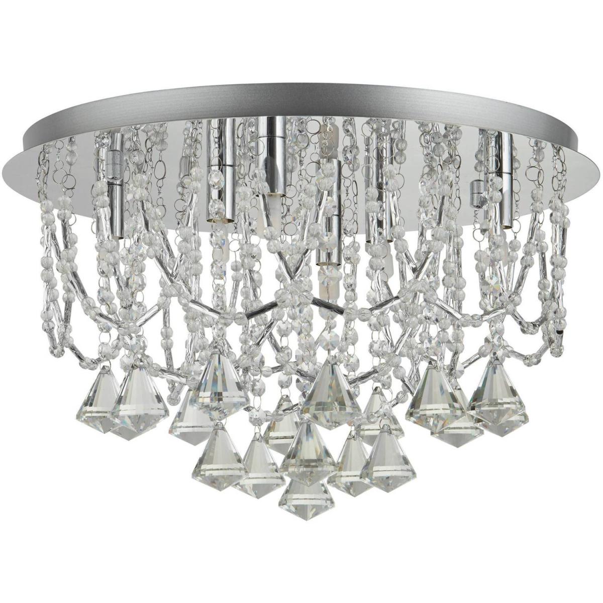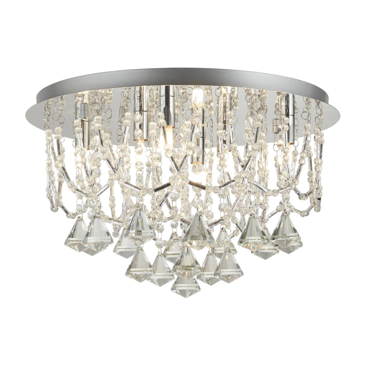 Elegant sophistication at its finest, this 6 light chrome ceiling flush will act as a centre piece for your living room. Crystal pyramid drops cascade from a chrome base along with further crystal trim detailing. The dazzling array of varying in size crystal looks truly stunning when lit perfect for catching the light. Ideal for a modern home searching for a glamorous centrepiece.