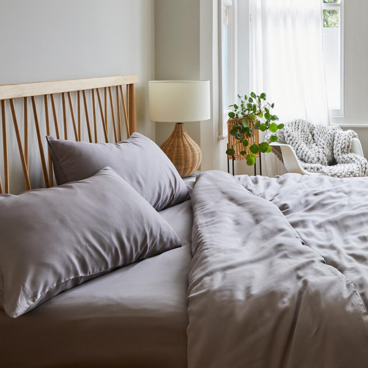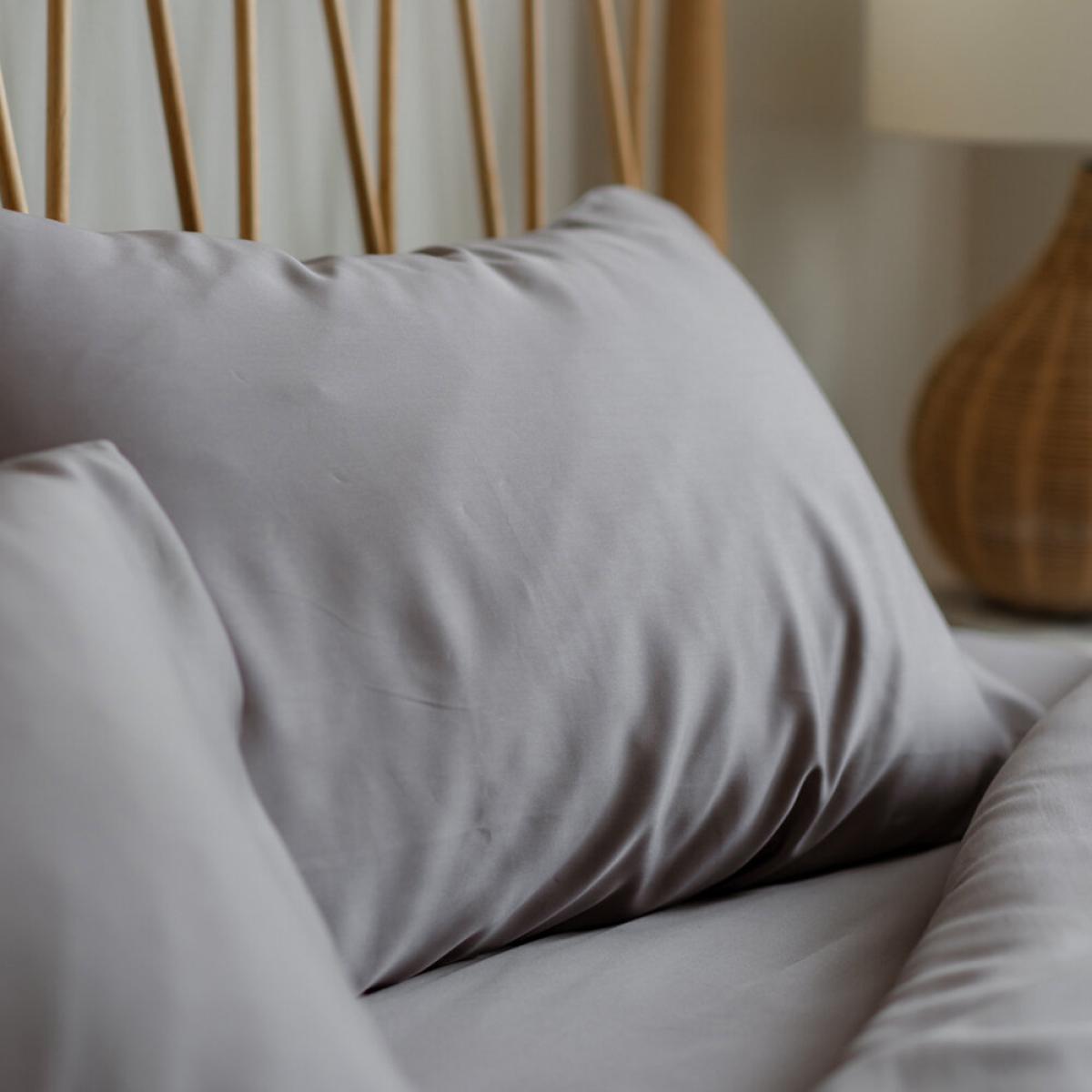 I love these Mela eucalyptus pillowcases because of their understated elegance and versatile colour. The grey tone works well in both modern and classic interiors, adding a calming touch to your bedroom. They’re perfect for creating a minimalist, spa-like atmosphere or layering with patterned cushions for a more eclectic look. Practical styling tips include pairing them with crisp white or soft pastel bedding for a fresh vibe, or complementing them with textured throws and linens for added depth. Their neutral shade makes them easy to mix and match across different colour schemes, making them a staple for any bedroom update.