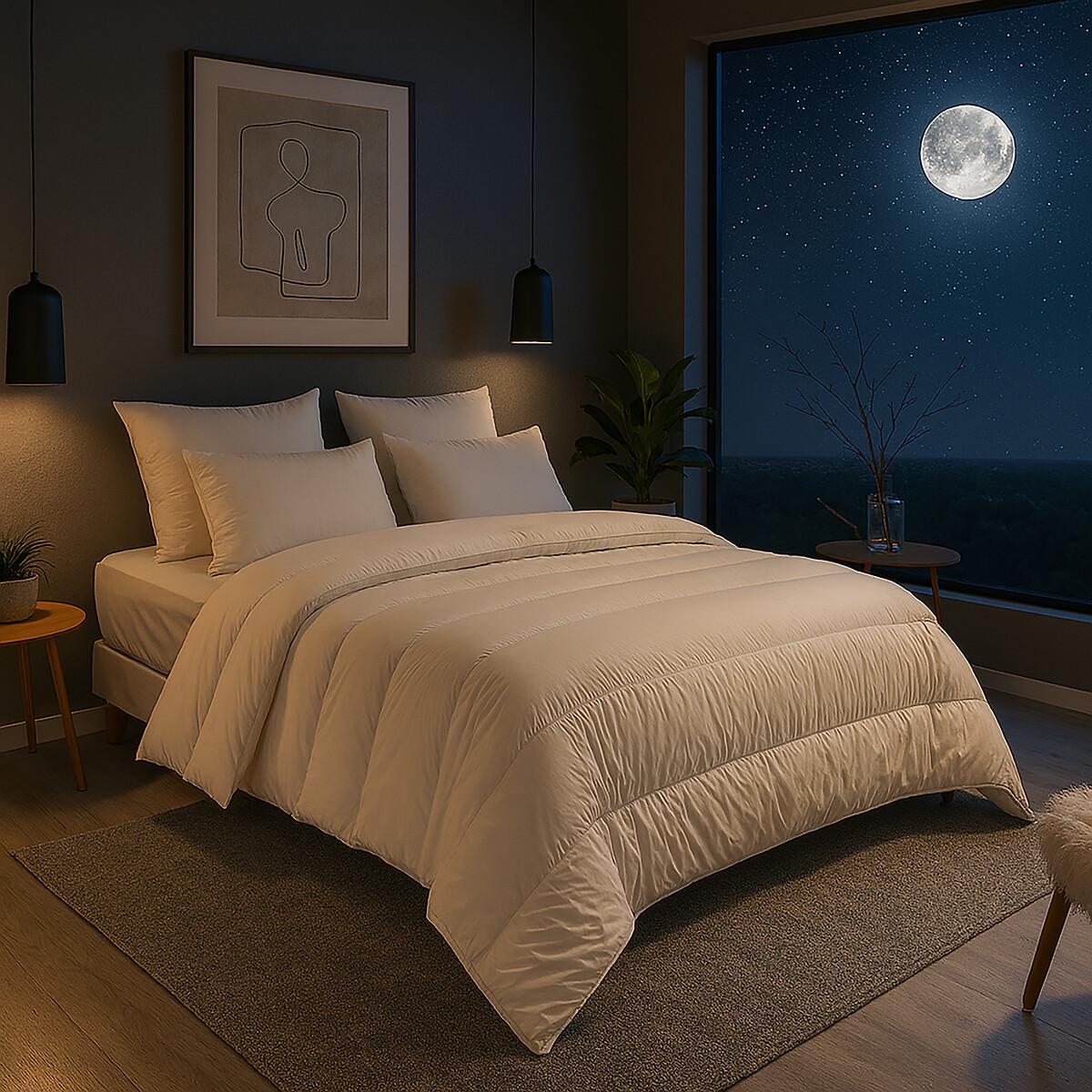 The Melato Rêve warm duvet combines comfort and innovation thanks to its cover enriched with tea tree essential oil. This plant treatment stimulates the production of melatonin to help you fall asleep. Made in France, it is the result of Dodo's expertise. • 300g/m²: Temperate duvet • Tog level: ideal for a temperate room heated from around 15 to 20°CChoose your duvet wisely? Consult the guide on our site. Product Details • 100% polyester fibre filling • Weight 300gsm • 100% polyester cover with plant-based treatment with tea tree essential oil • Care instructions • Machine washable at 40°C • Can be tumble dried at moderate temperature. Dimensions • 140 x 200cm: Single • 220 x 240cm: Super King • 240 x 260cm: Super King • Made in France. • OEKO-TEX® Standard 100. Standard 100 certification by OEKO-TEX® tests textile products for harmful substances via an independent, international label.