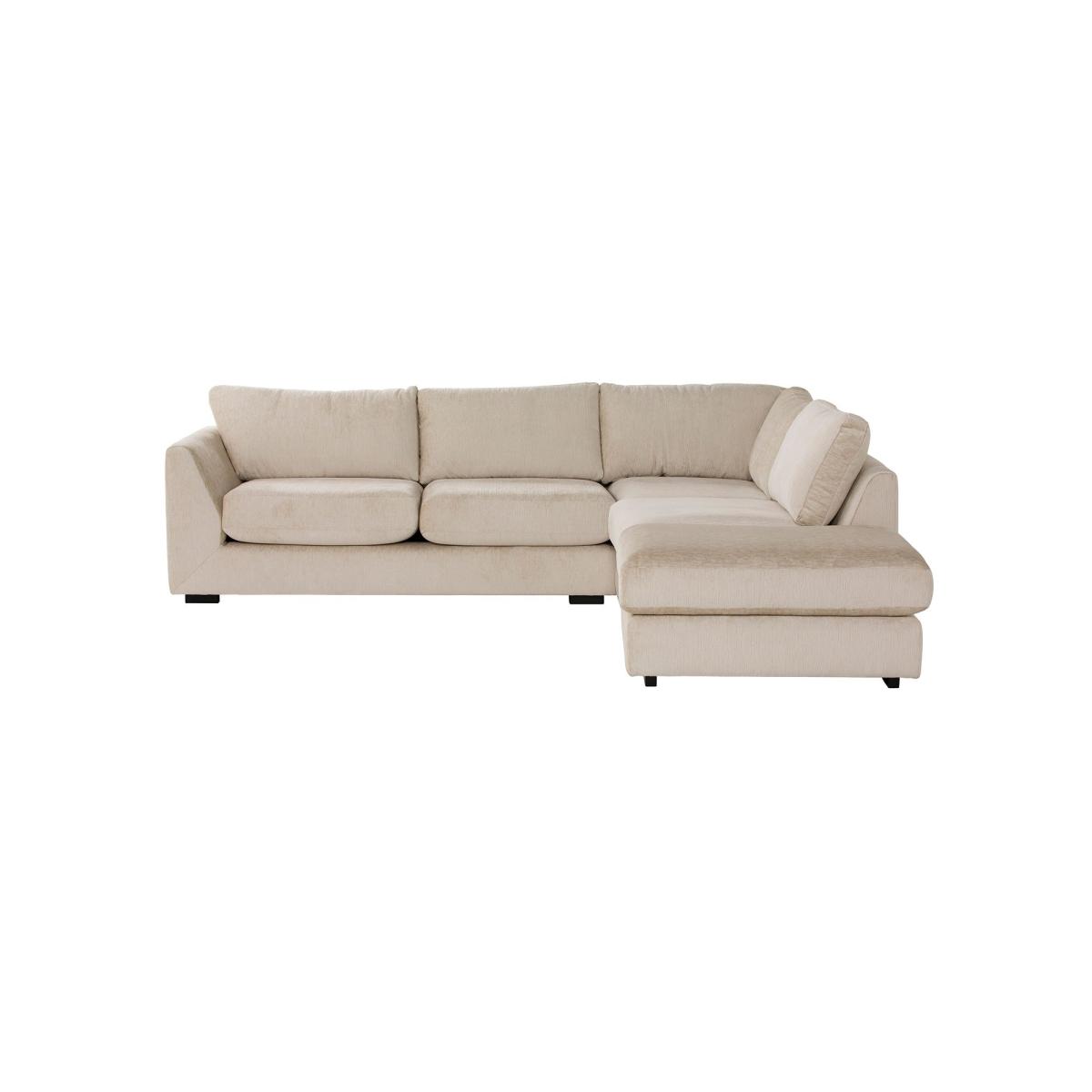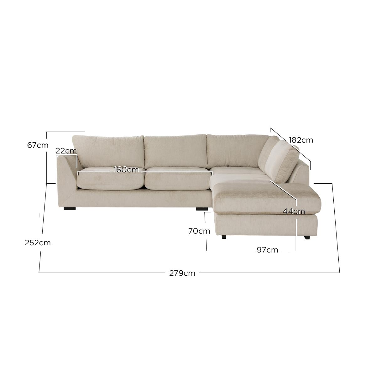 The Melby Right Hand Facing Cream Velvet Corner Sofa adds style and luxury to any home. A classic, versatile design with contrasting dark wooden feet, this homely number includes durable foam filled seat cushions upholstered in soft Ivory fabric for a support that is made to last. Featuring foam and feather filled back cushions, the Melby Right Hand Facing Cream Velvet Corner Sofa brings unmissable comfort with the welcome addition of the footrest that creates a space for ultimate relaxation and a handy extra seat too!