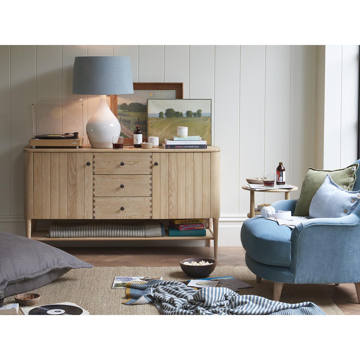 I love the Melder Sideboard for its clean, timeless design and versatile presence. It works well in both contemporary and more traditional interiors, especially those aiming for a relaxed, natural vibe. Its neutral finish makes it a flexible piece to style - try pairing it with brass or matte black accessories for contrast, or keep it minimal with monochrome tones. Practical styling tips include using the top for decorative objects or a statement lamp, while the drawers and cupboards offer ample storage to keep clutter out of sight. It’s an ideal addition for living rooms, dining areas, or even hallways where functionality meets understated style.