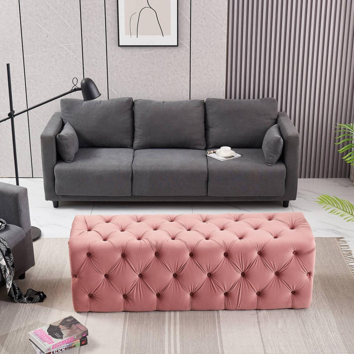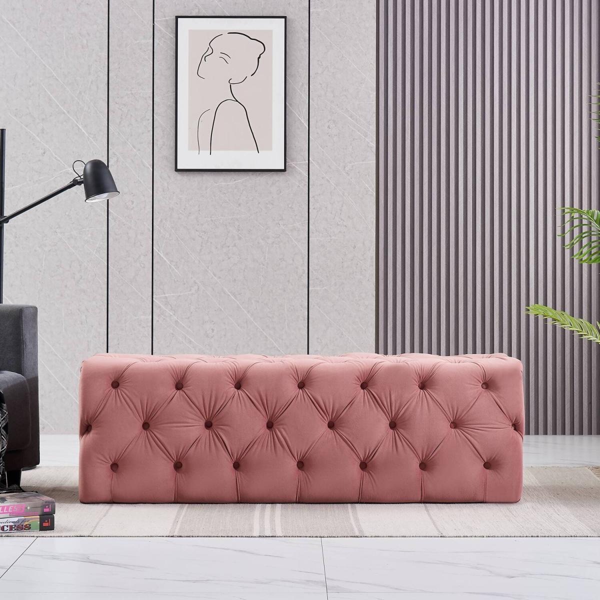This truly unique and beautiful Velvet Pouffe doubles up as an additional seating footstool for you to sit back and relax after a hard and long day. The Chesterfield-inspired footstool bench is Upholstered in a soft touch velvet fabric, complete with stylish buttoned detailing. The Melia Buttoned Ottoman Bench would make both a trendy and practical addition to any home. Perfect for additional seating in your living room, bedroom, office, or anywhere inside your house. We spare no expense with the bench. Moreover, the soft velvet body gives you plenty of comforts while being used as both the footstool option and as an additional seating option. Either way, you or your guests will be sitting in comfort and pure prestige.