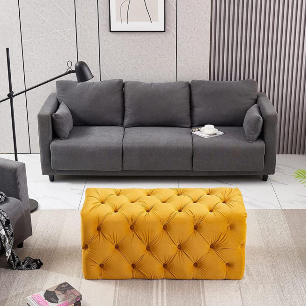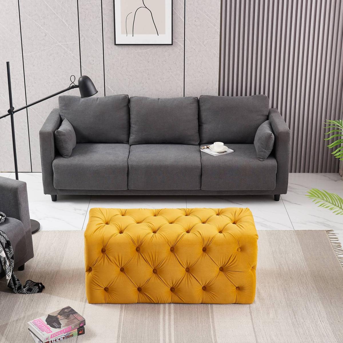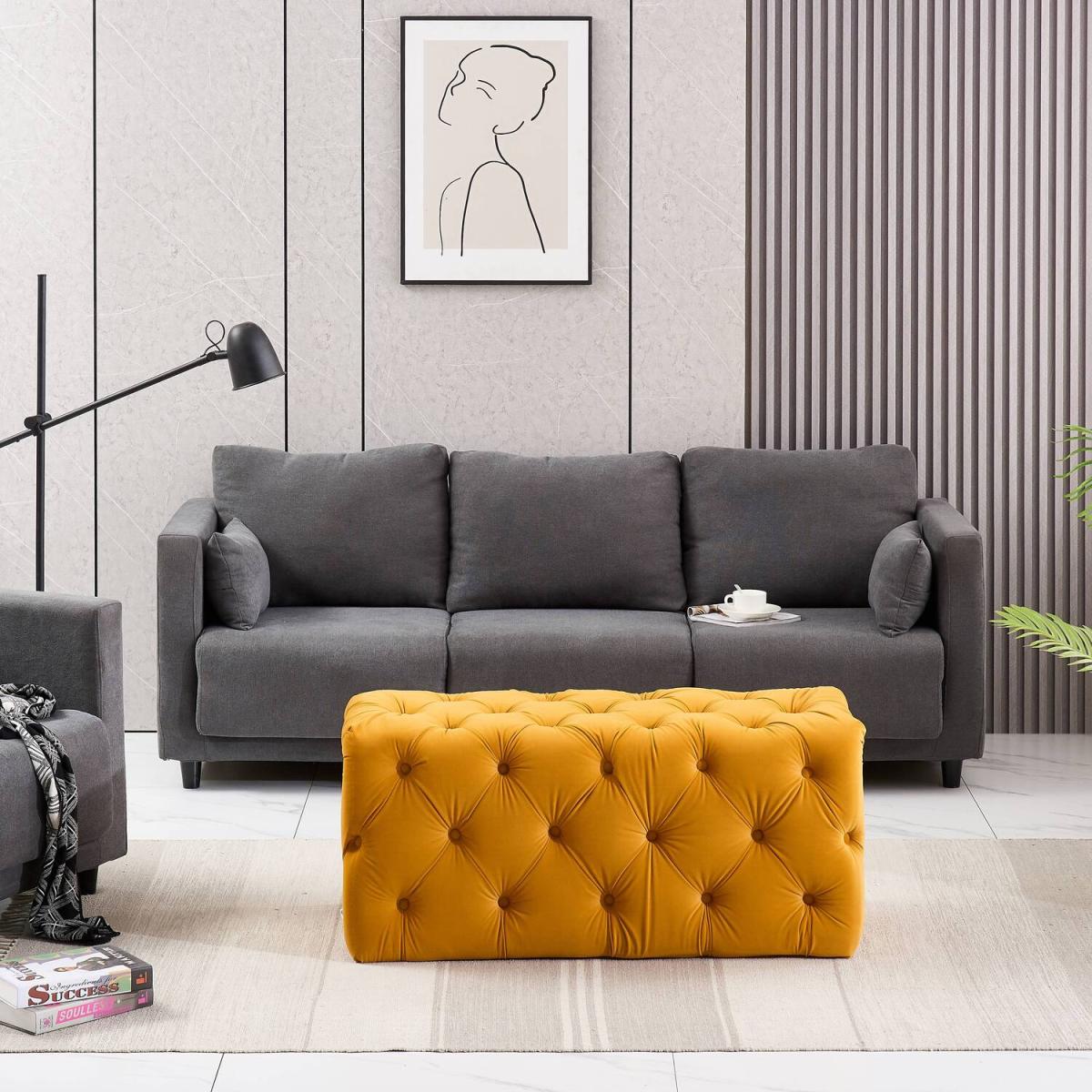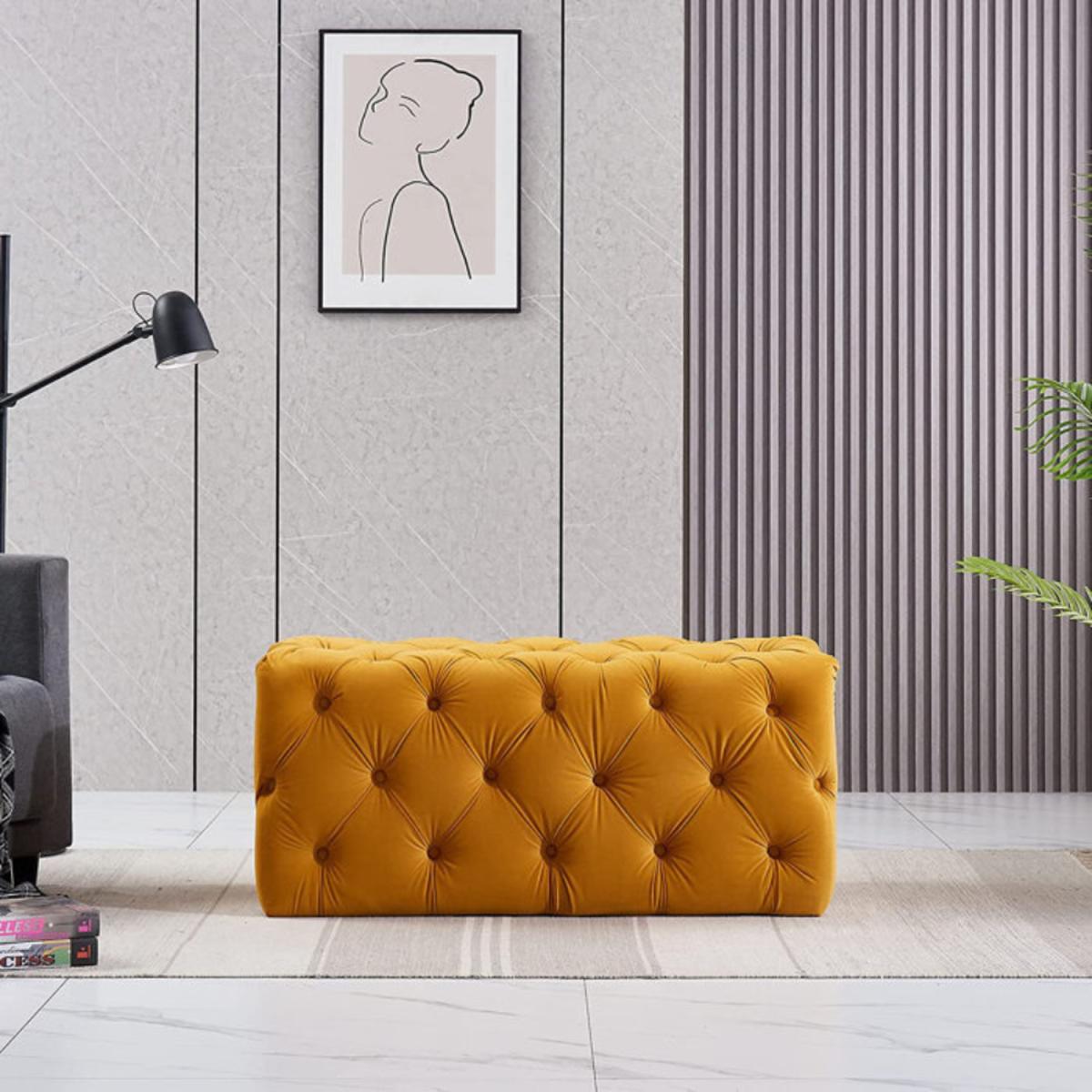 This truly unique and beautiful Velvet Pouffe doubles up as both additional seating footstool for you to sit back and relax after a hard and long day. The Chesterfield-inspired footstool bench is Upholstered in a soft touch velvet fabric, complete with stylish buttoned detailing. The Melia Buttoned Ottoman Bench would make both a trendy and practical addition to any home. Perfect for additional seating in your living room, bedroom, office, or anywhere inside your house. We spare no expense with the bench. Moreover, the soft velvet body gives you plenty of comfort while being used as both the footstool option and as an additional seating option. Either way, you or your guests will be sitting in comfort and pure prestige.