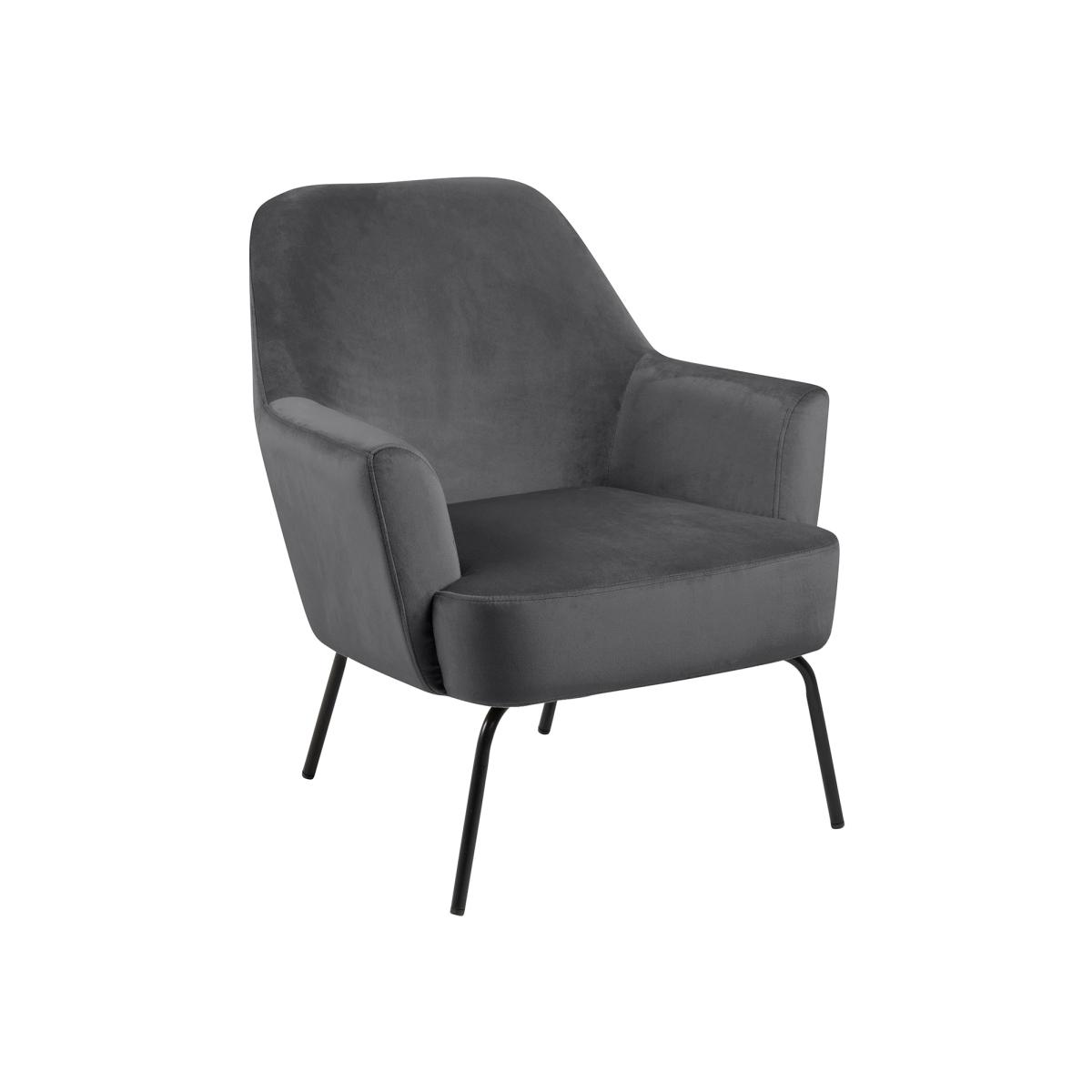 I’m a fan of this dark grey lounge chair for its clean, contemporary lines and slim metal legs - it feels both light and supportive. The muted tone and simple silhouette suit modern Scandi, industrial or minimalist settings, and it pairs especially well with warm wood accents or a low-profile side table. To style, drape a textured cushion or a neutral wool throw over one arm and position it beside a floor lamp for a cosy reading nook. Its compact footprint also makes it a versatile choice for smaller living areas or bedrooms.
