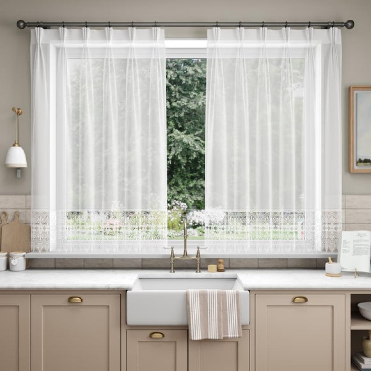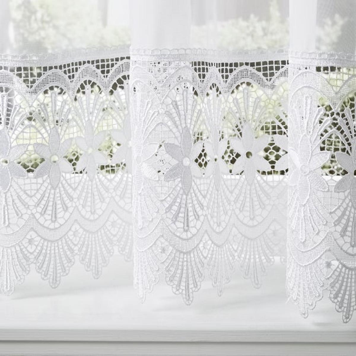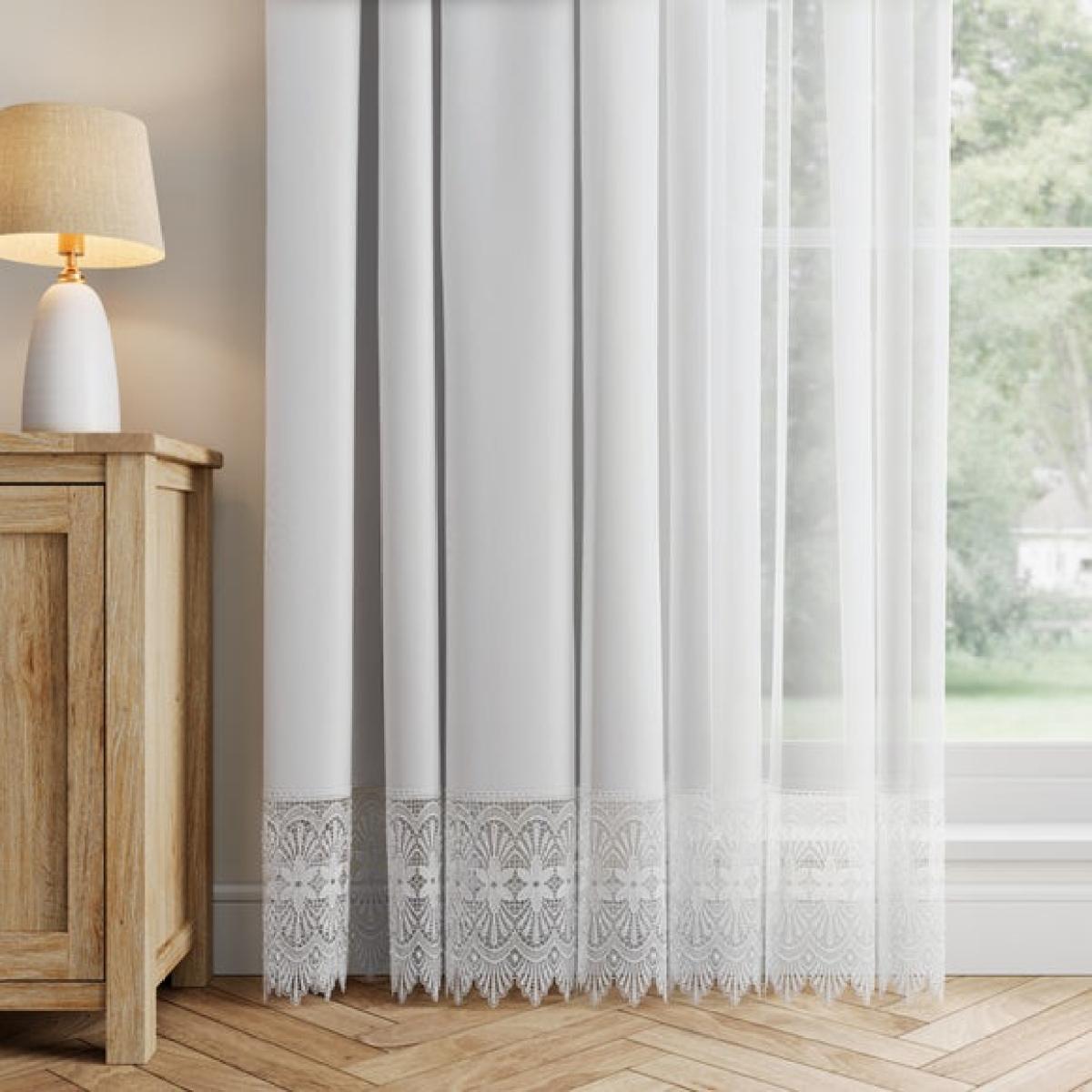 * Lightweight, polyester composition * Intricate macrame design * Available in a selection of header options * Coordinating Made to Measure Fabric by the Metre available to purchase separately Introduce intricate detail with the Melissa Made to Measure Voile Curtain. This lightweight polyester fabric features a macramé embroidery border, adding a delicate, boho-inspired touch to your space. Ideal for custom curtains that offer privacy while softly diffusing light, it pairs beautifully with matching made-to-measure options available in a selection of header styles for a bespoke finish.