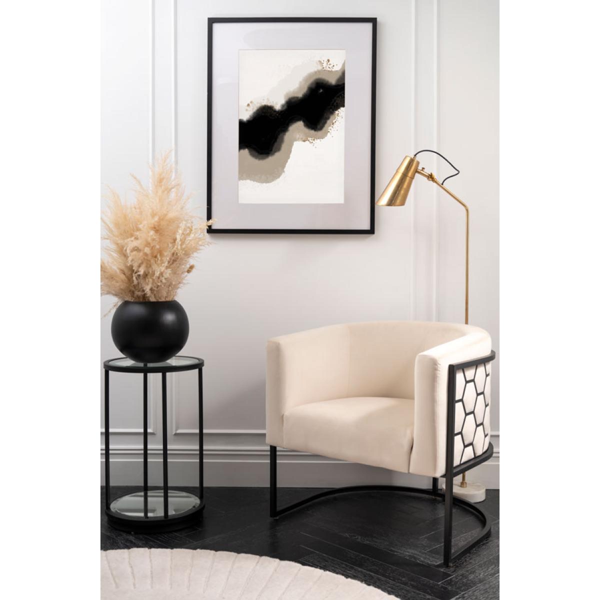 I love this piece because of its minimalistic design and versatile colour palette, making it easy to integrate into a range of interiors. It works particularly well in modern, Scandinavian, or contemporary spaces where clean lines and neutral tones dominate. For styling tips, consider pairing it with other monochrome or muted accessories to create a cohesive look, or hang it above a neutral-toned sofa or sideboard to add visual interest without overwhelming the space. The black frame adds a crisp edge that can anchor a gallery wall or stand alone as a statement piece, making it adaptable for both residential and commercial interiors.