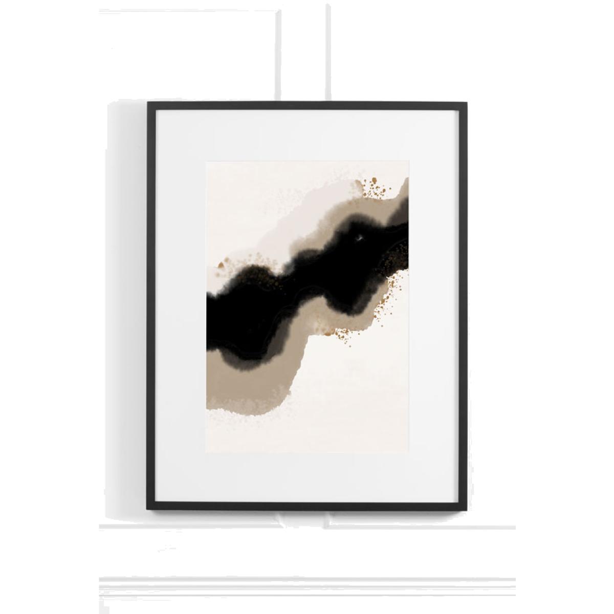 Abstract watercolour flowing lines in a coffee inspired colour palette. Printed on heavyweight 250gsm canvas effect material. Elegant matte black wooden frame.