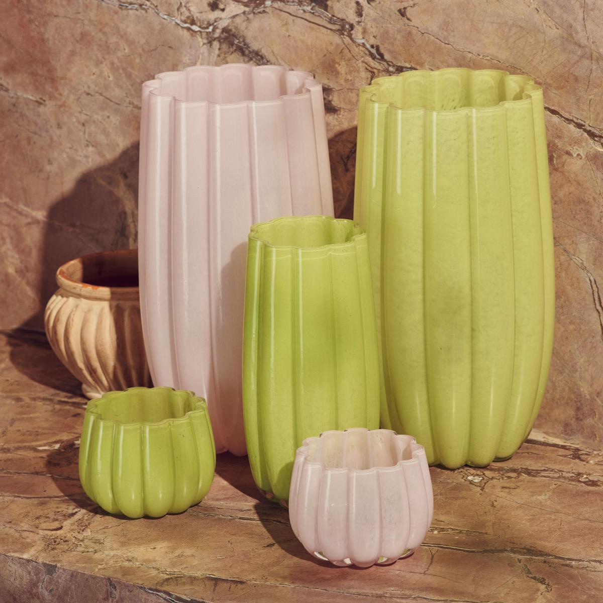The Melon vase combines fresh colours with soft, round shapes. The wavy surface is feminine and romantic.